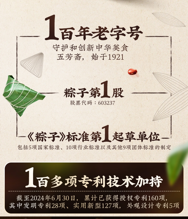 五芳鲜肉更好吃 丰富口味;独家秘制配方 传统工艺 ;中华老字号 大品牌 员工福利送礼佳品