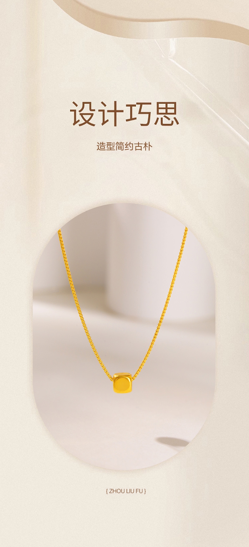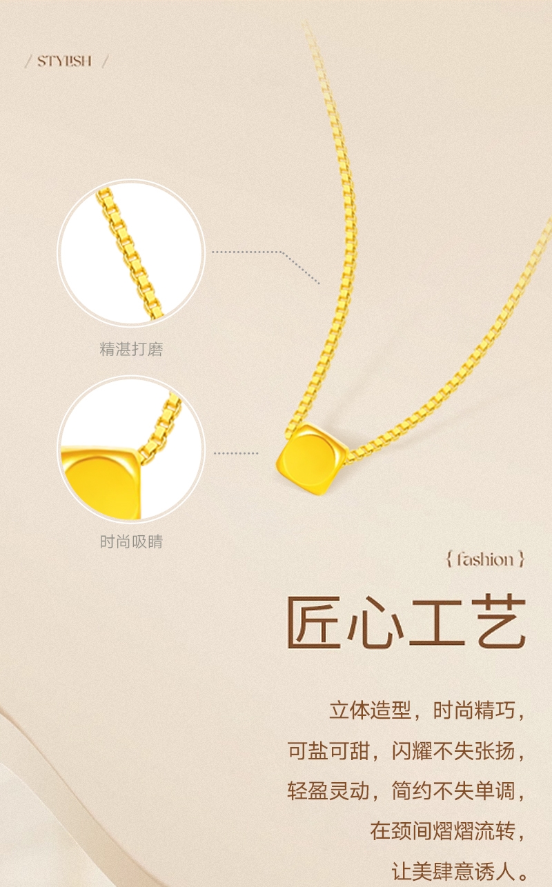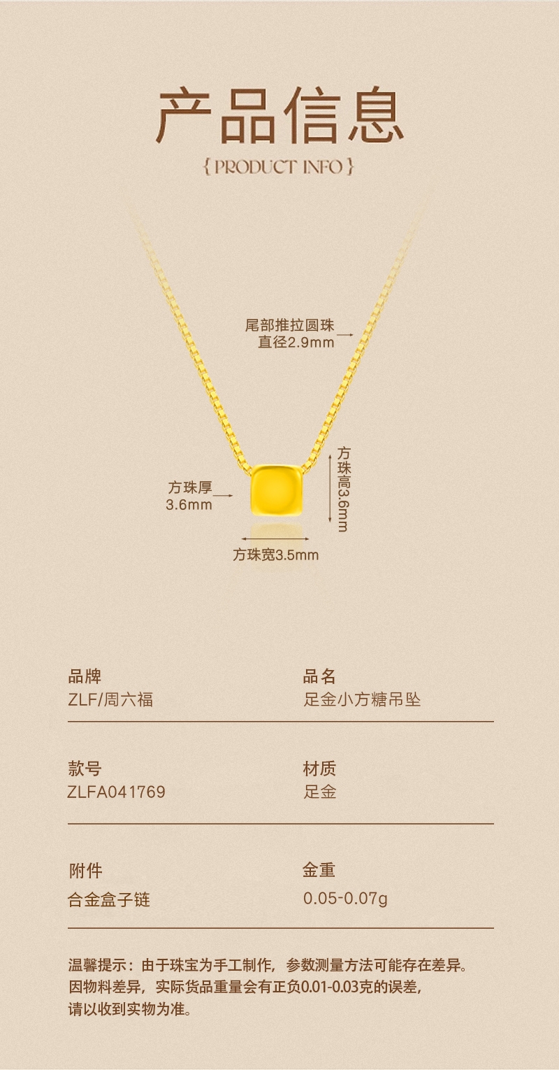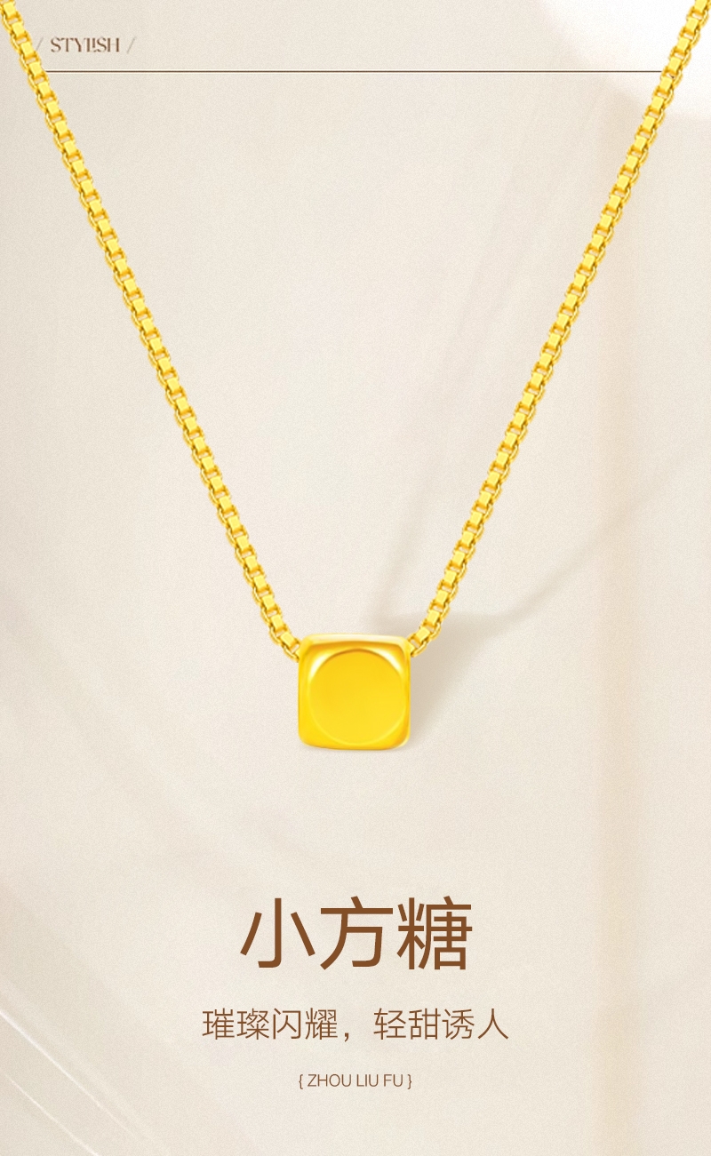 周六福 足金小方糖吊坠ZLFA041769