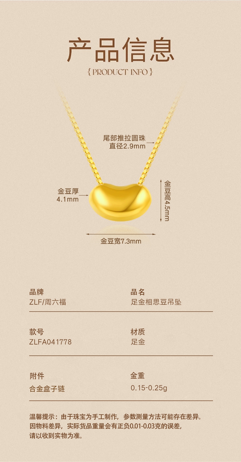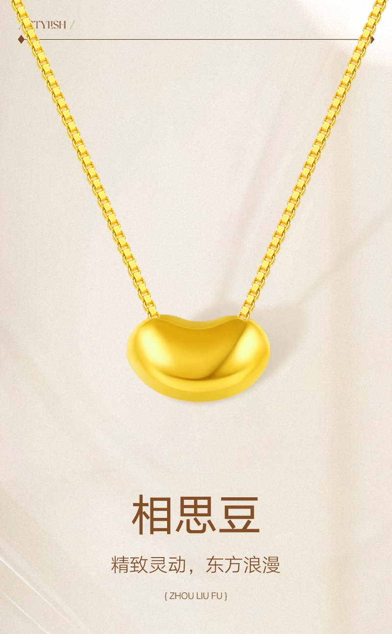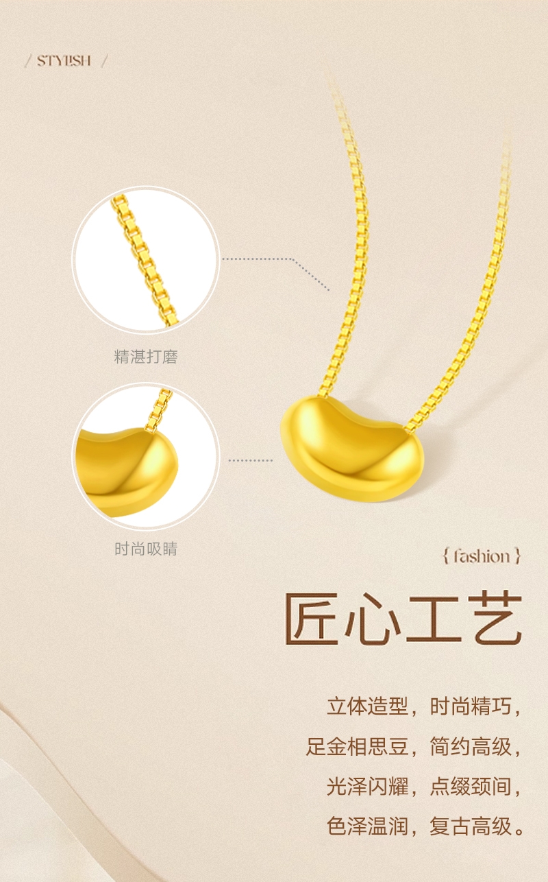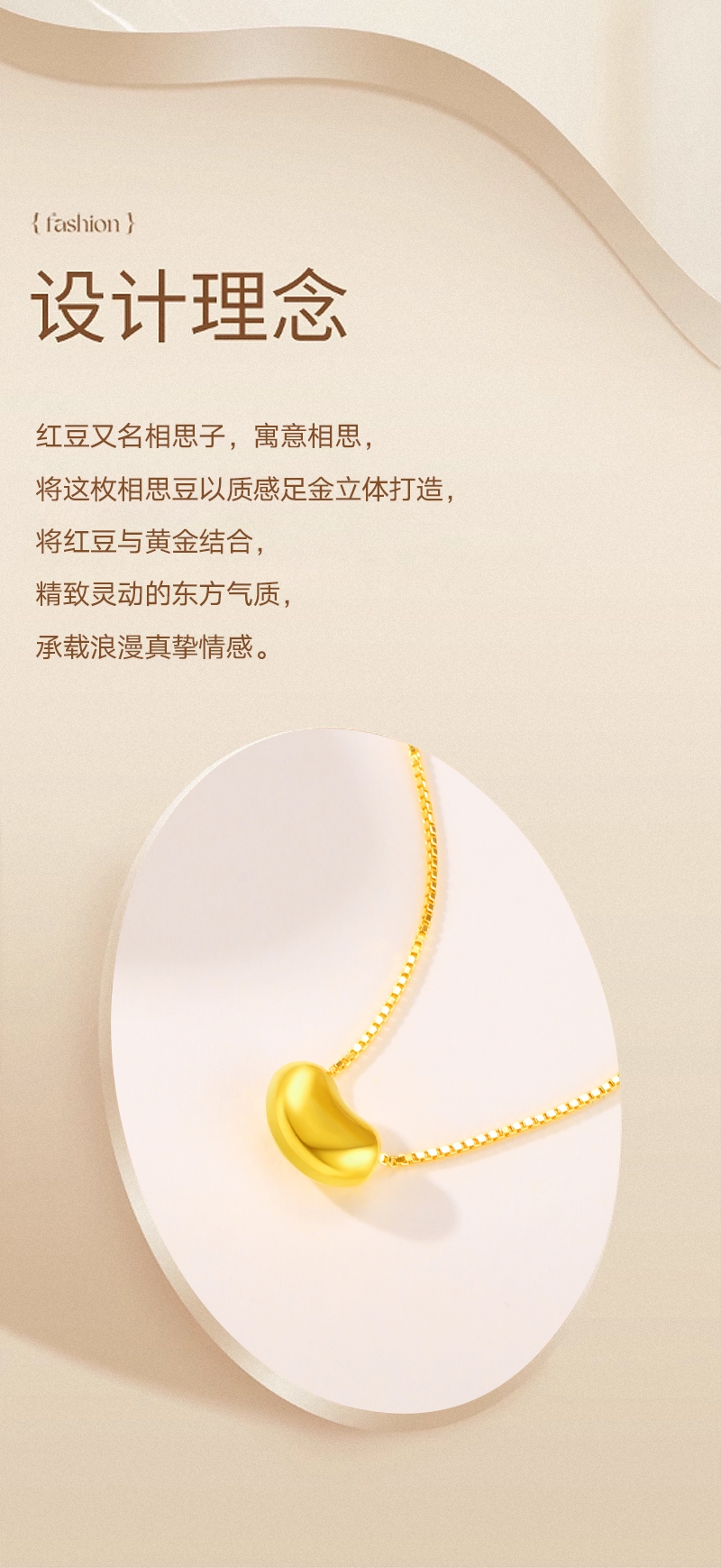 相思豆,精致灵动,东方浪漫;红豆又名相思子,寓意相思;将这枚相思豆以质感足金立体打造