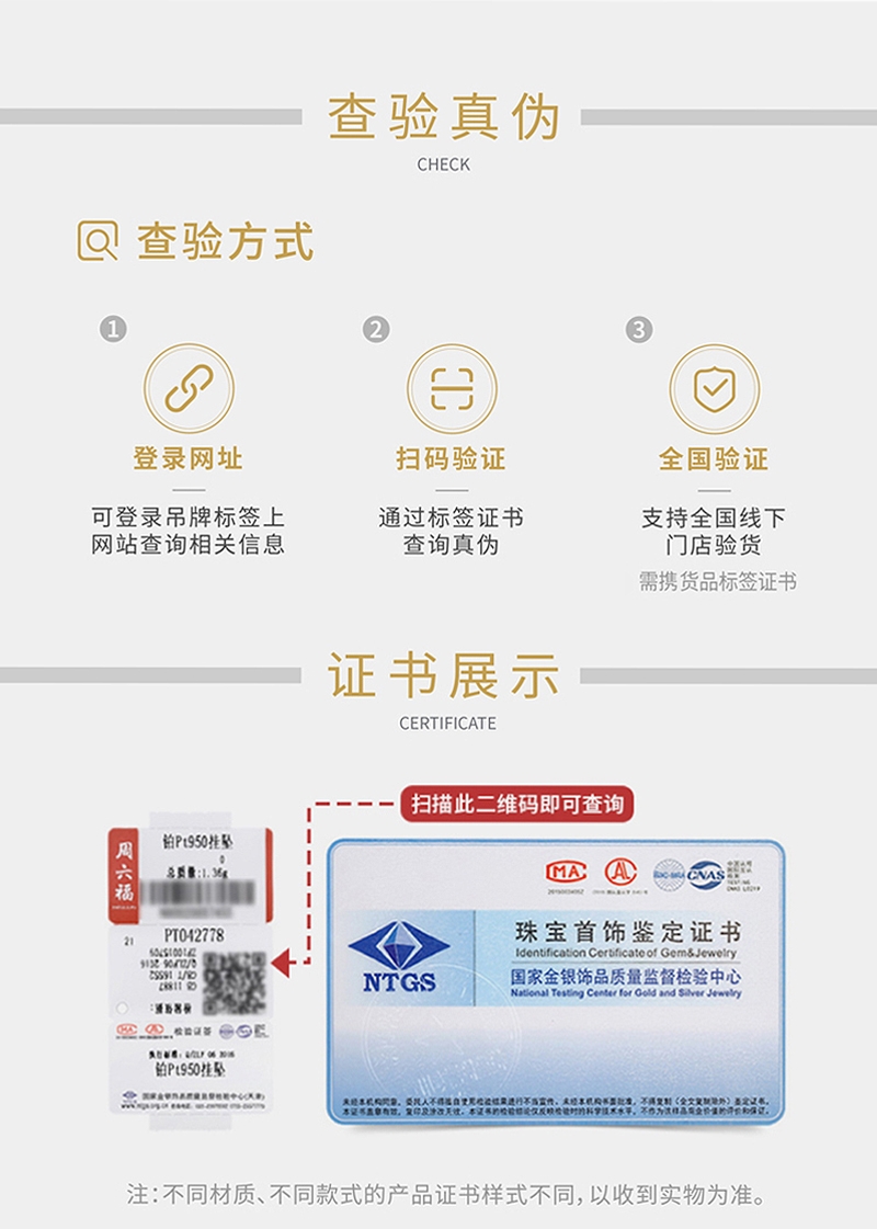 配置清单:项链*1、鉴定证书*1、标签*1、售后保修手册*1、包装盒*1、信封袋*1