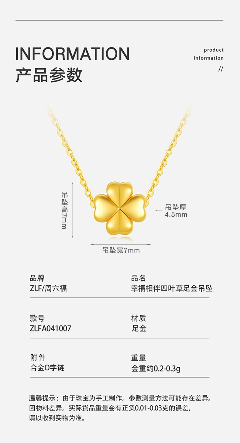 周六福 足金幸福相伴四叶草吊坠ZLFA041007