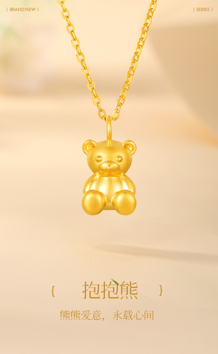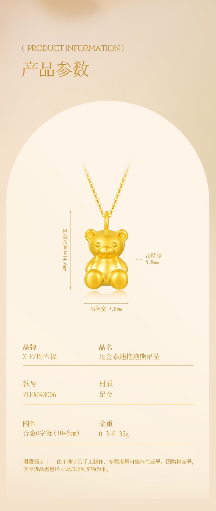 周六福 足金泰迪抱抱熊吊坠ZLFA043006