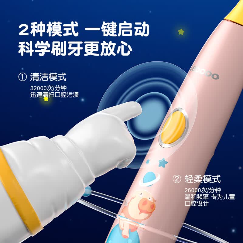 萌感蛋崽设计 ,激发宝宝刷牙兴趣;云柔分龄刷头 ,护龈更防蛀;30秒换区提醒 ,2分钟定时停止