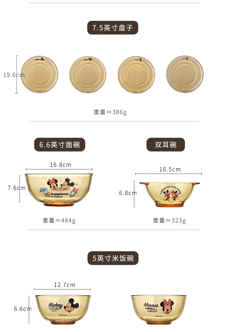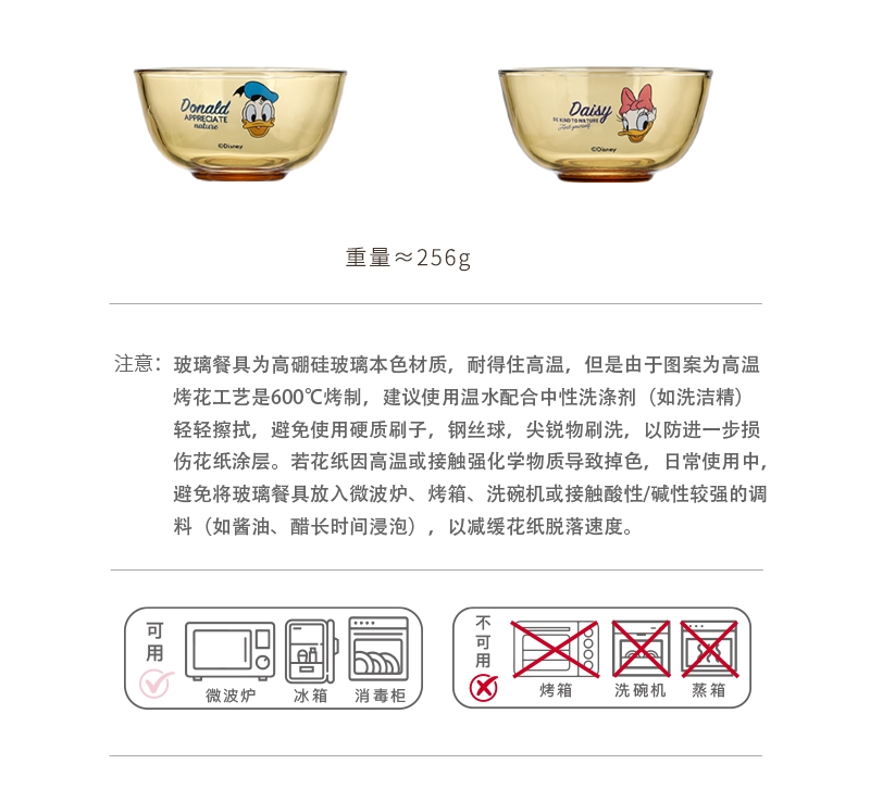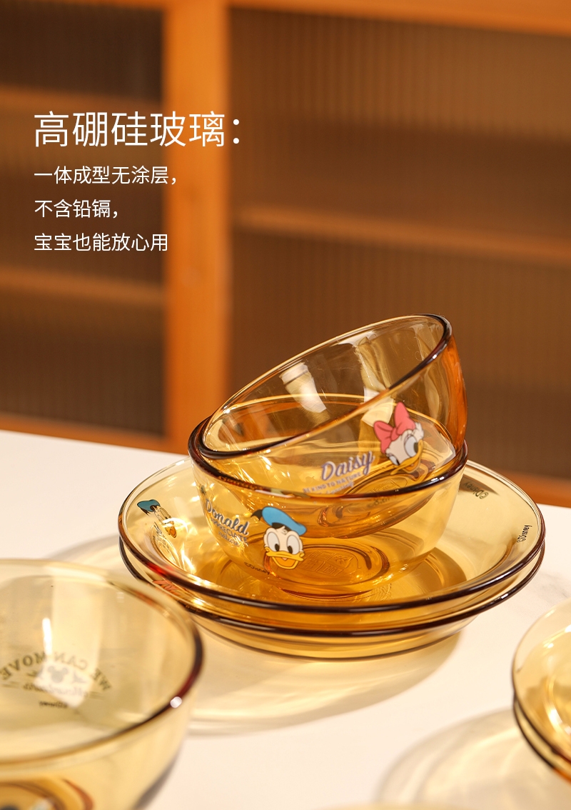 迪士尼正品高硼硅玻璃餐具米饭碗;康宁品质材质工艺;耐高温5英寸米饭碗