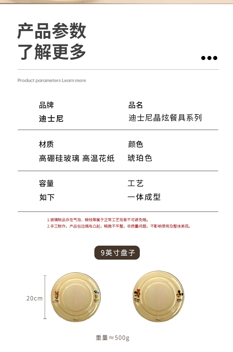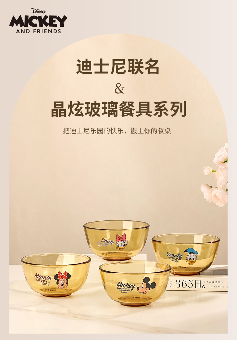 迪士尼 琥珀轻奢玻璃米饭碗5英寸彩盒装