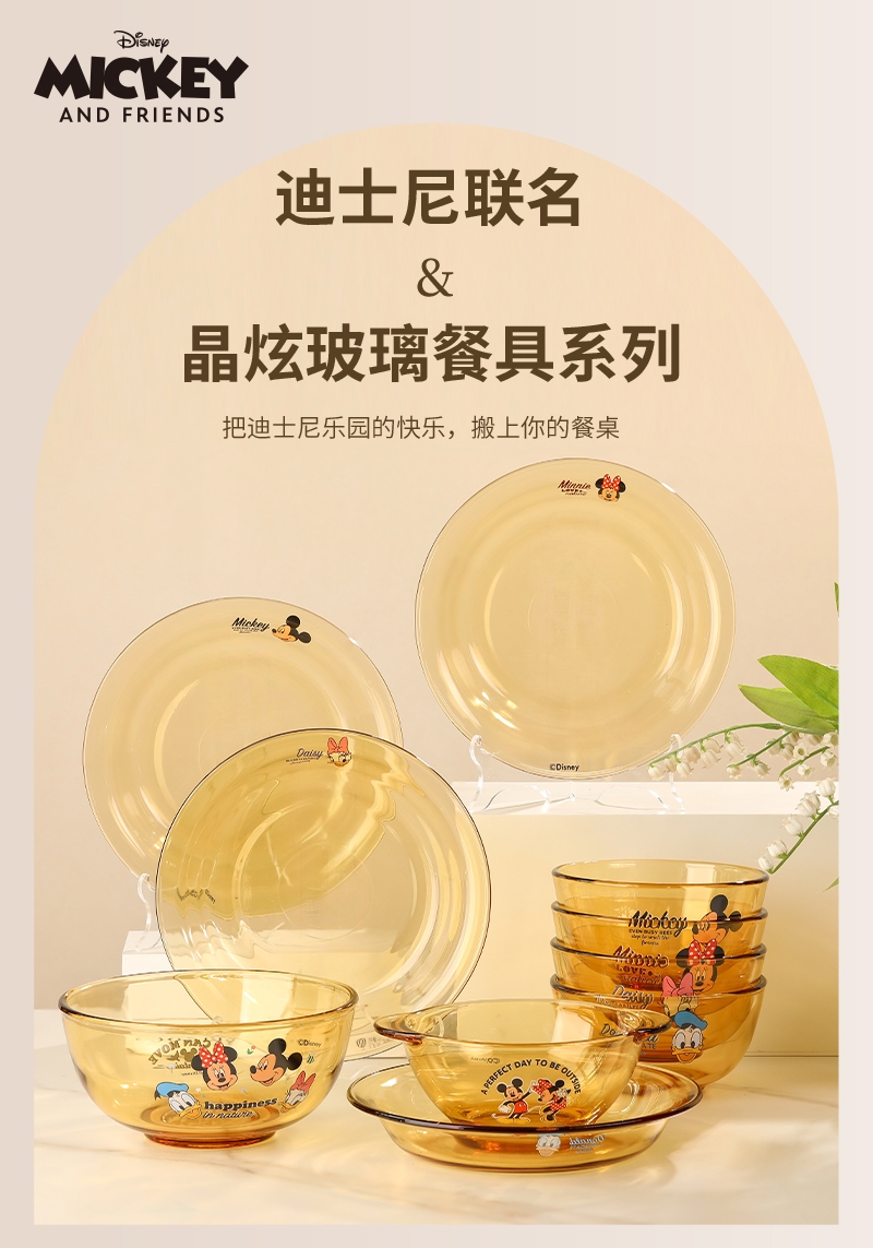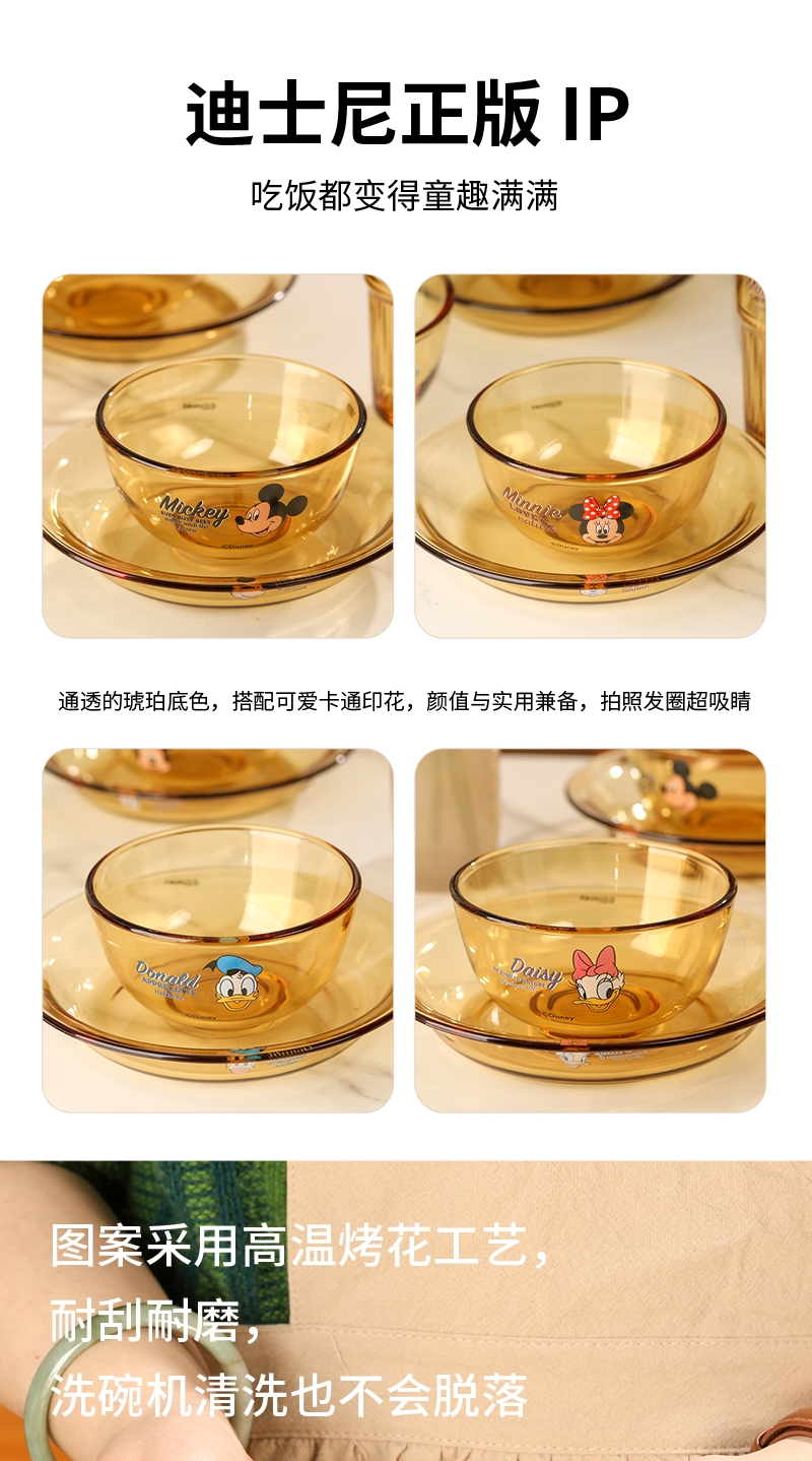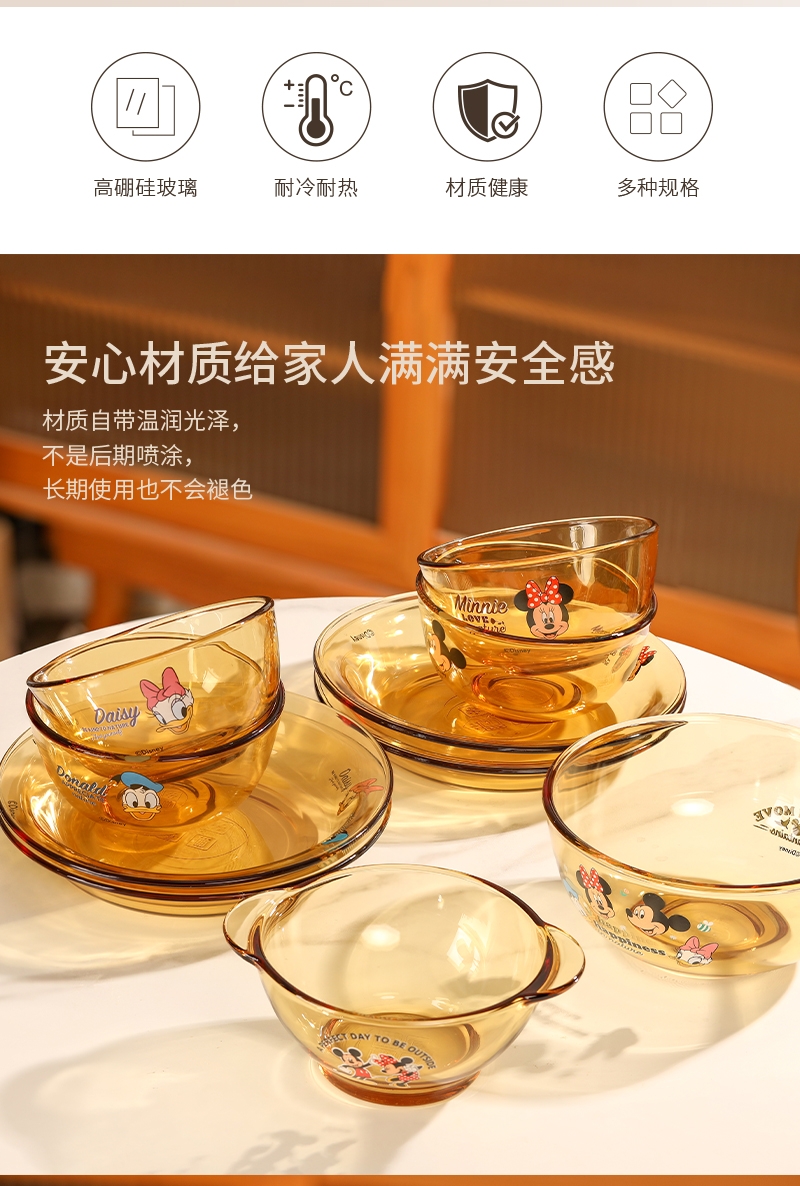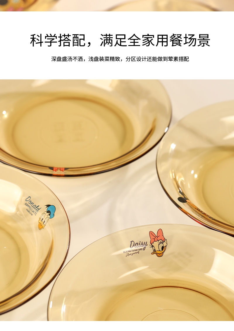 迪士尼正品玻璃餐具菜盘;康宁品质工艺;耐高温,可入微波炉,洗碗机,消毒柜,烤箱,蒸箱,冰