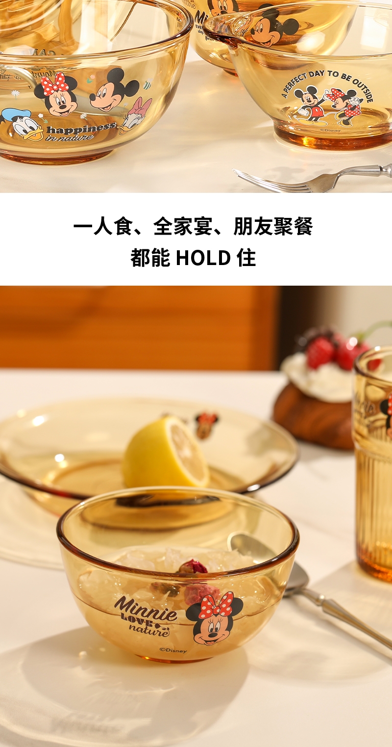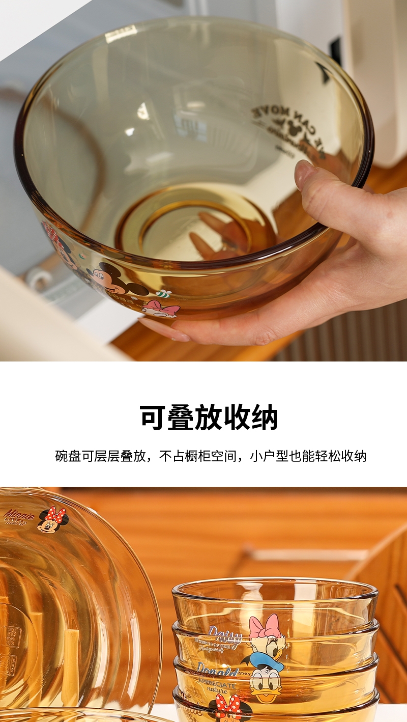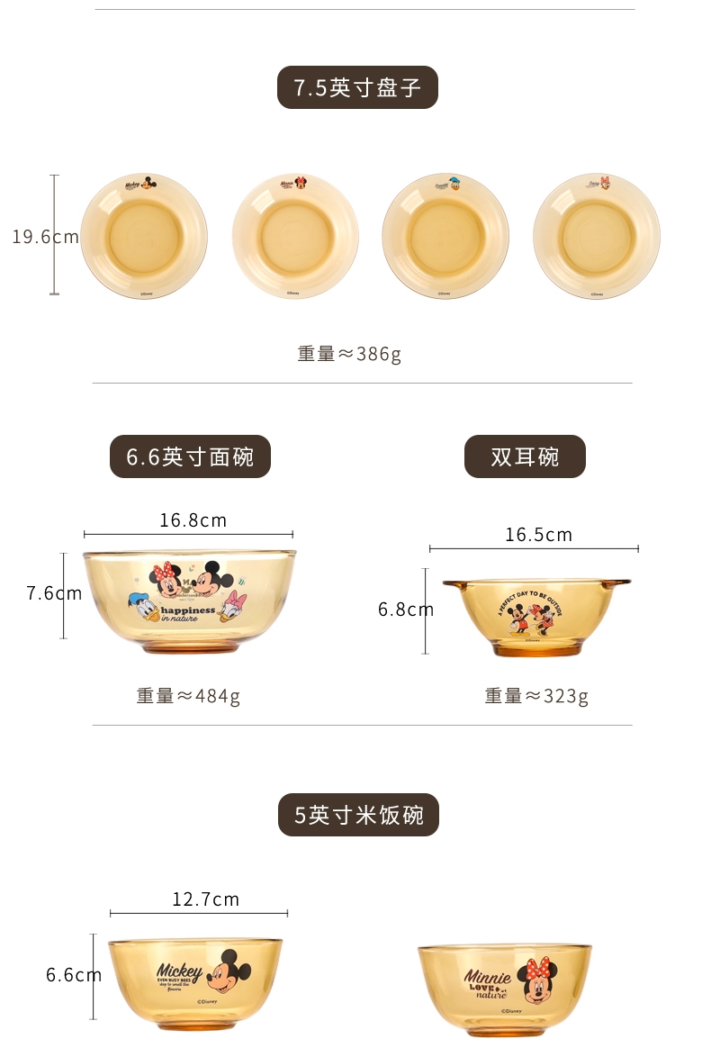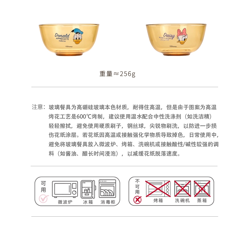 迪士尼正品玻璃餐具菜盘;康宁品质工艺;耐高温,可入微波炉,洗碗机,消毒柜,烤箱,蒸箱,冰