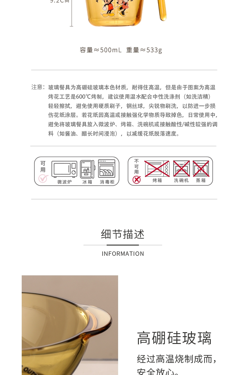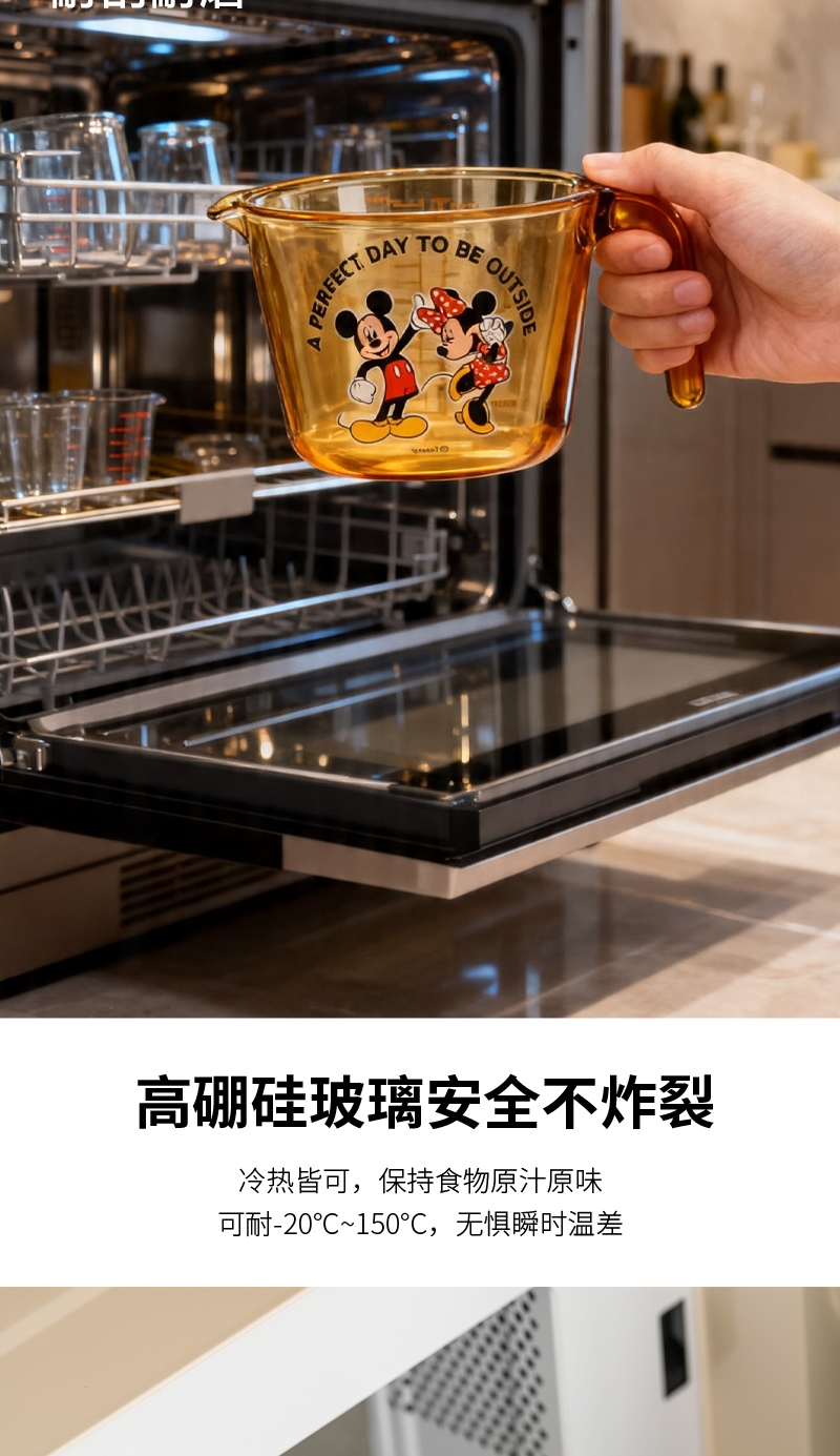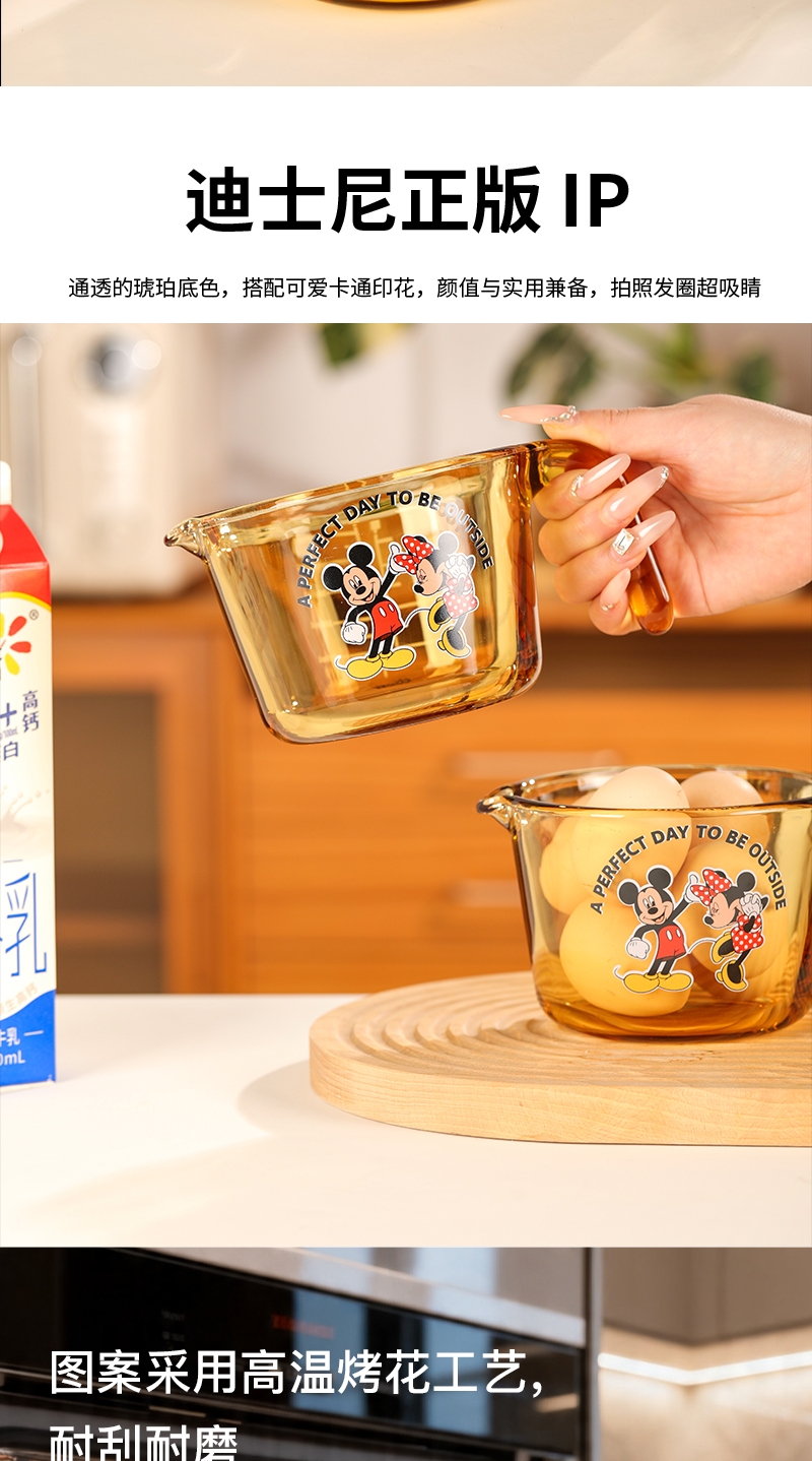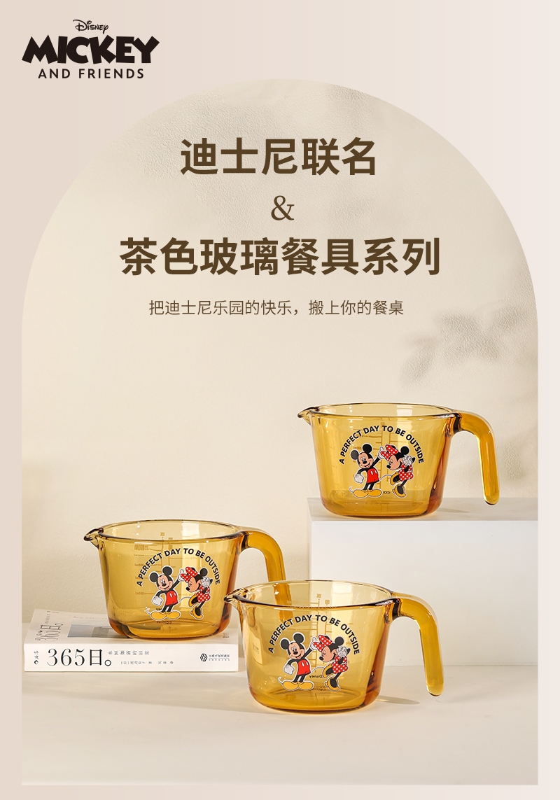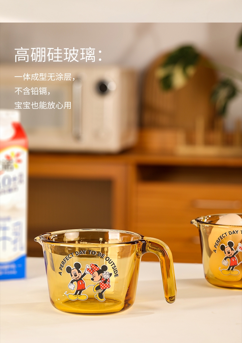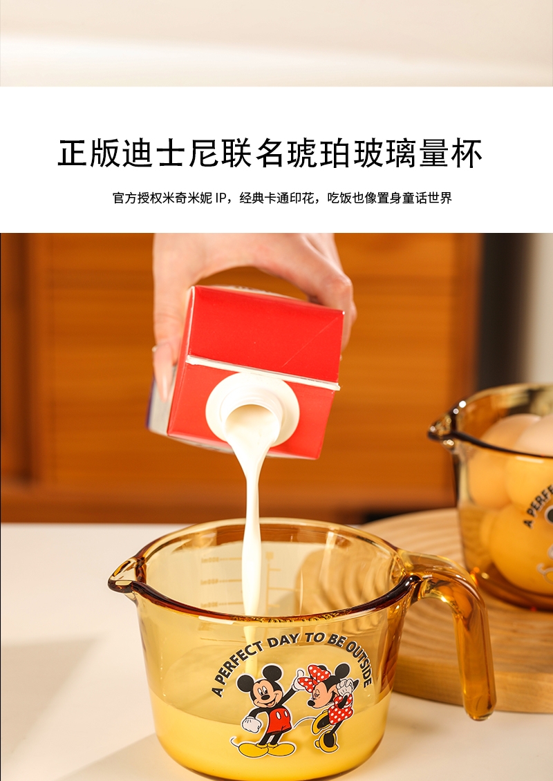 迪士尼正品耐高温玻璃量杯;康宁品质工艺;琥珀本色久用不掉色