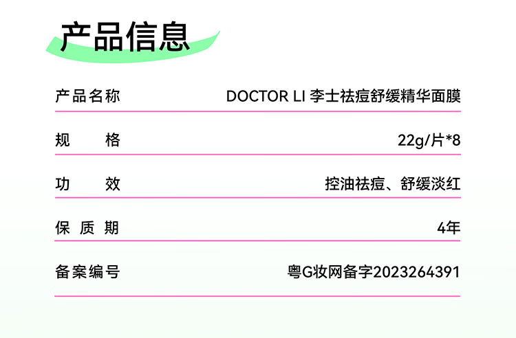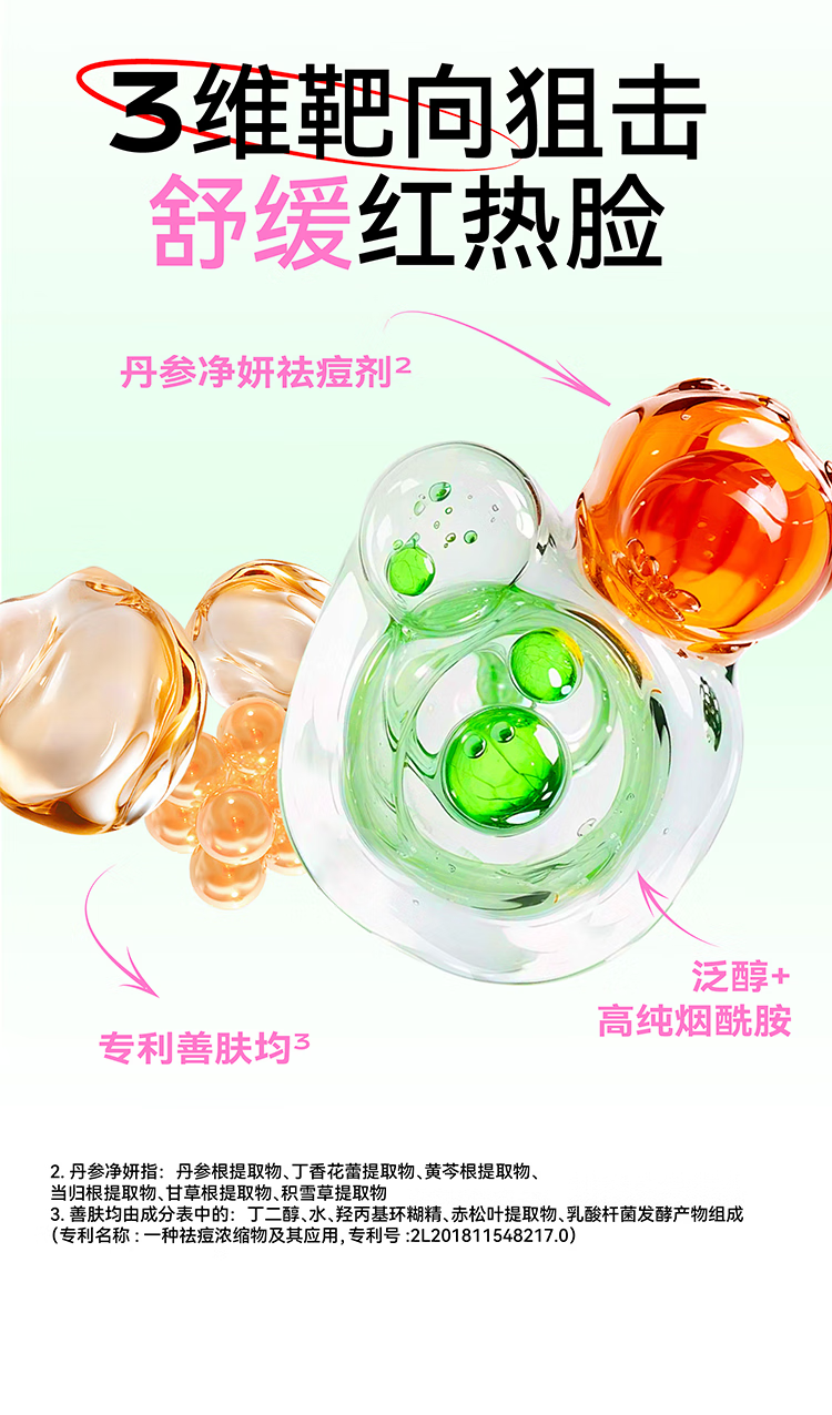 敏感肌适用;减退泛红痘印;减少油脂分泌