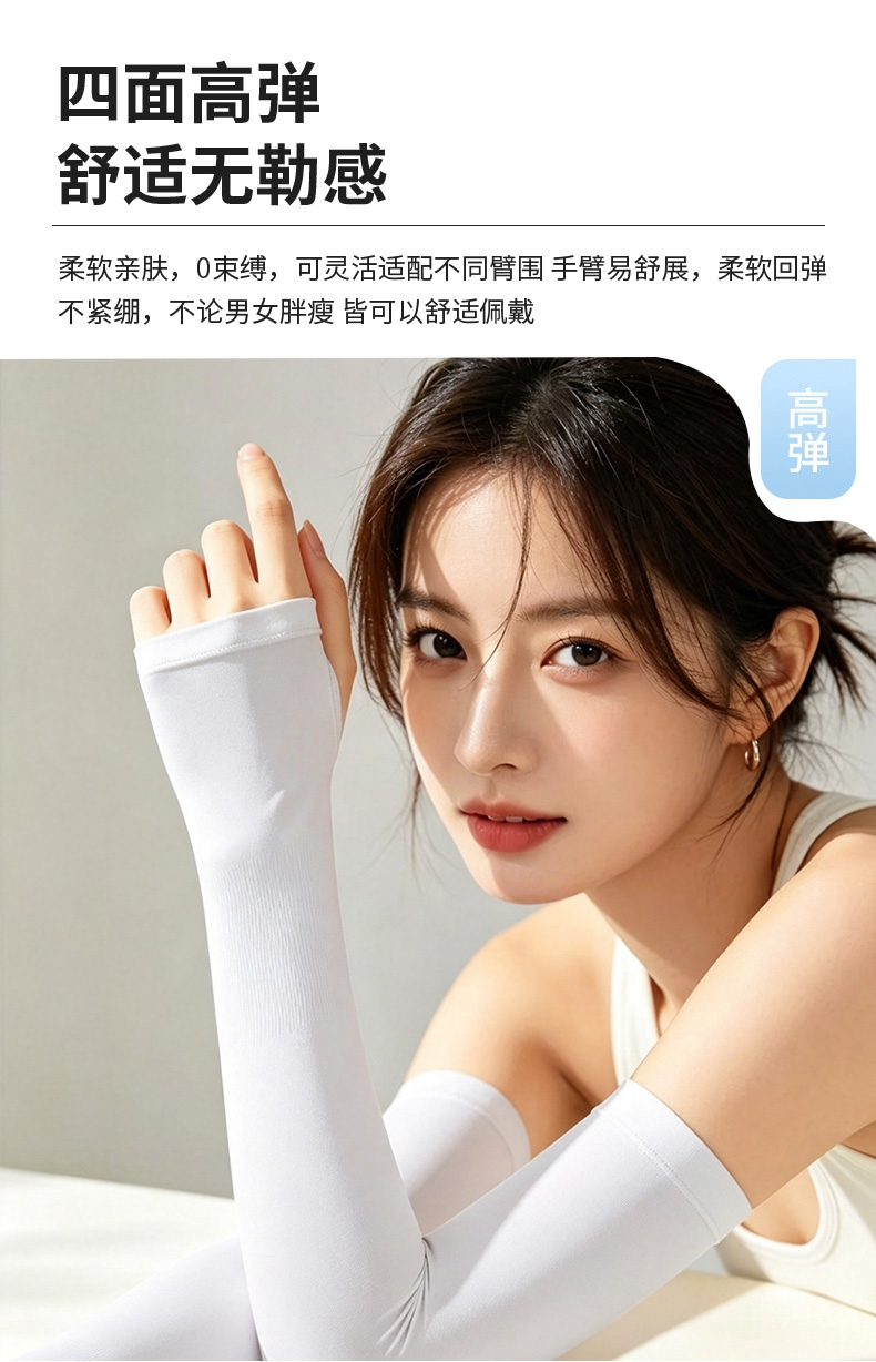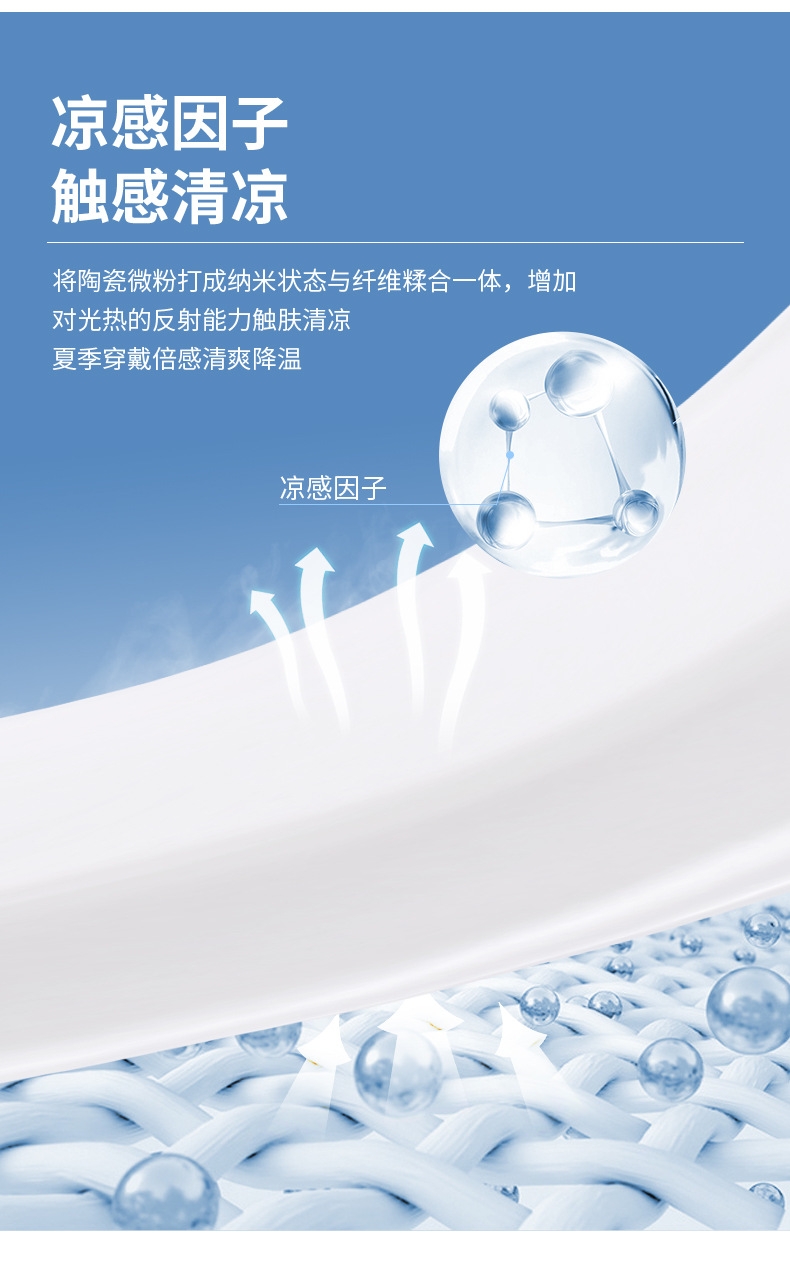 采用锦纶功能性纱线制作,凉感透气吸汗性更好;产品自带接触性凉感,(不添加冷感助剂);360度无缝编织技术,弹性大,无勒感,久用不易