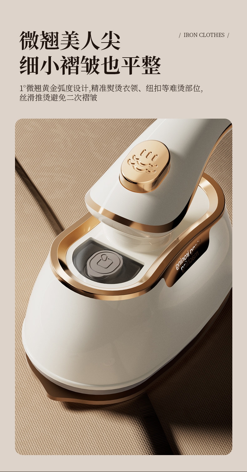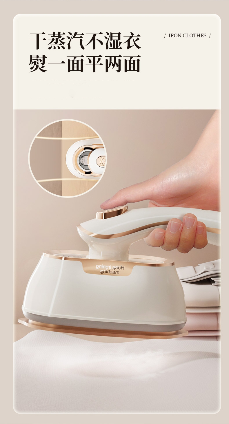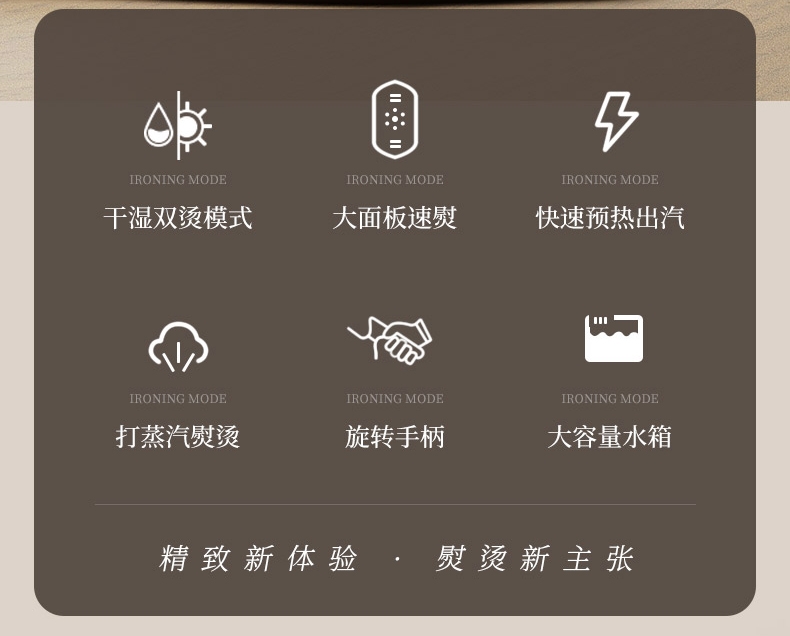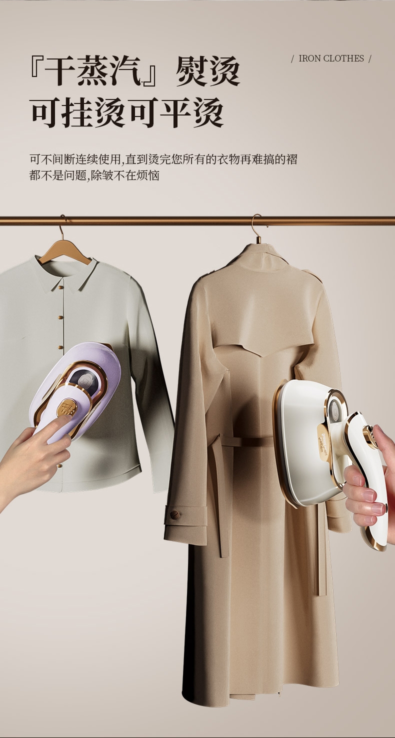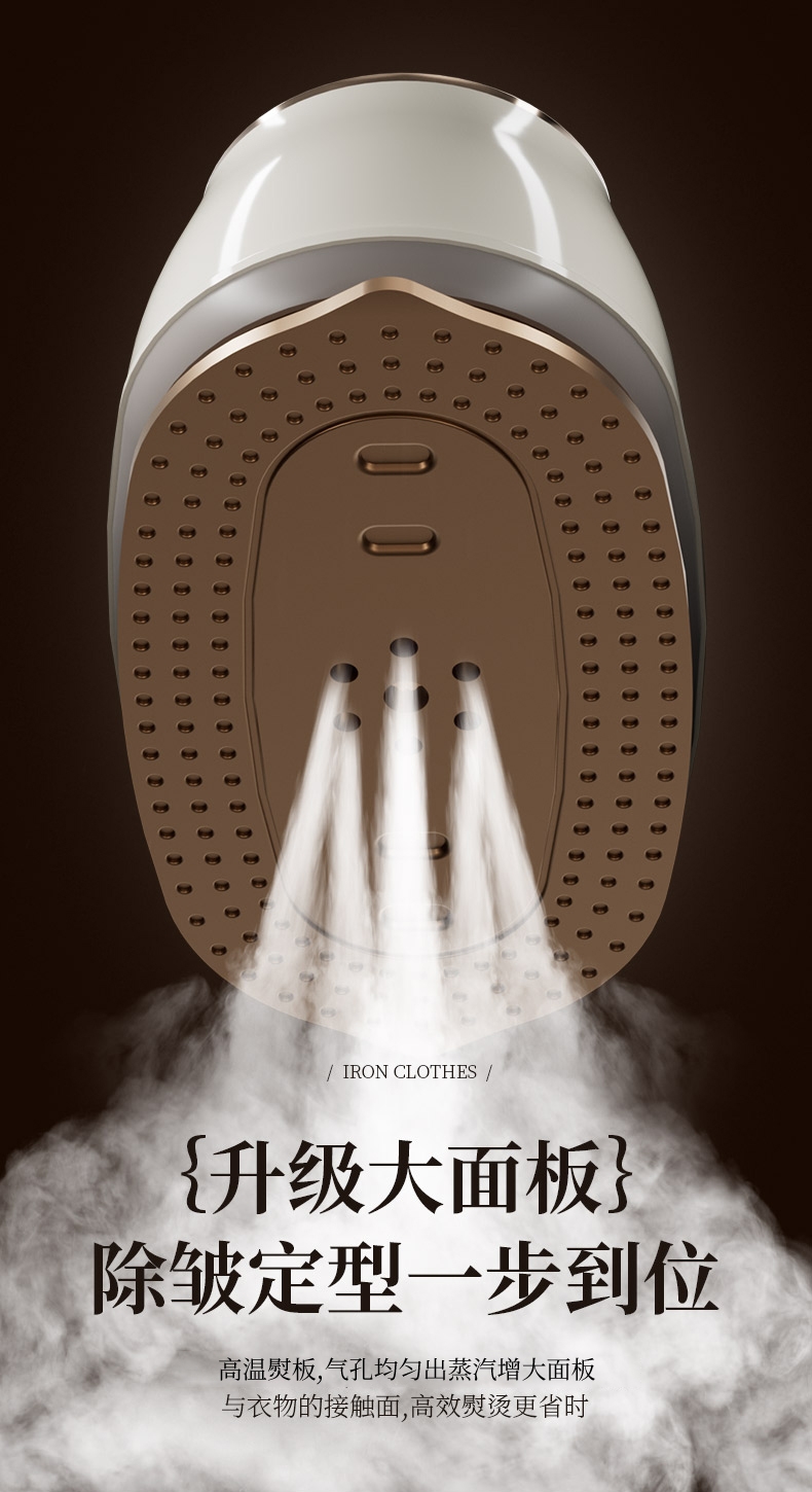 干湿双烫一烫即平;7孔强动出蒸汽;180°高温熨板