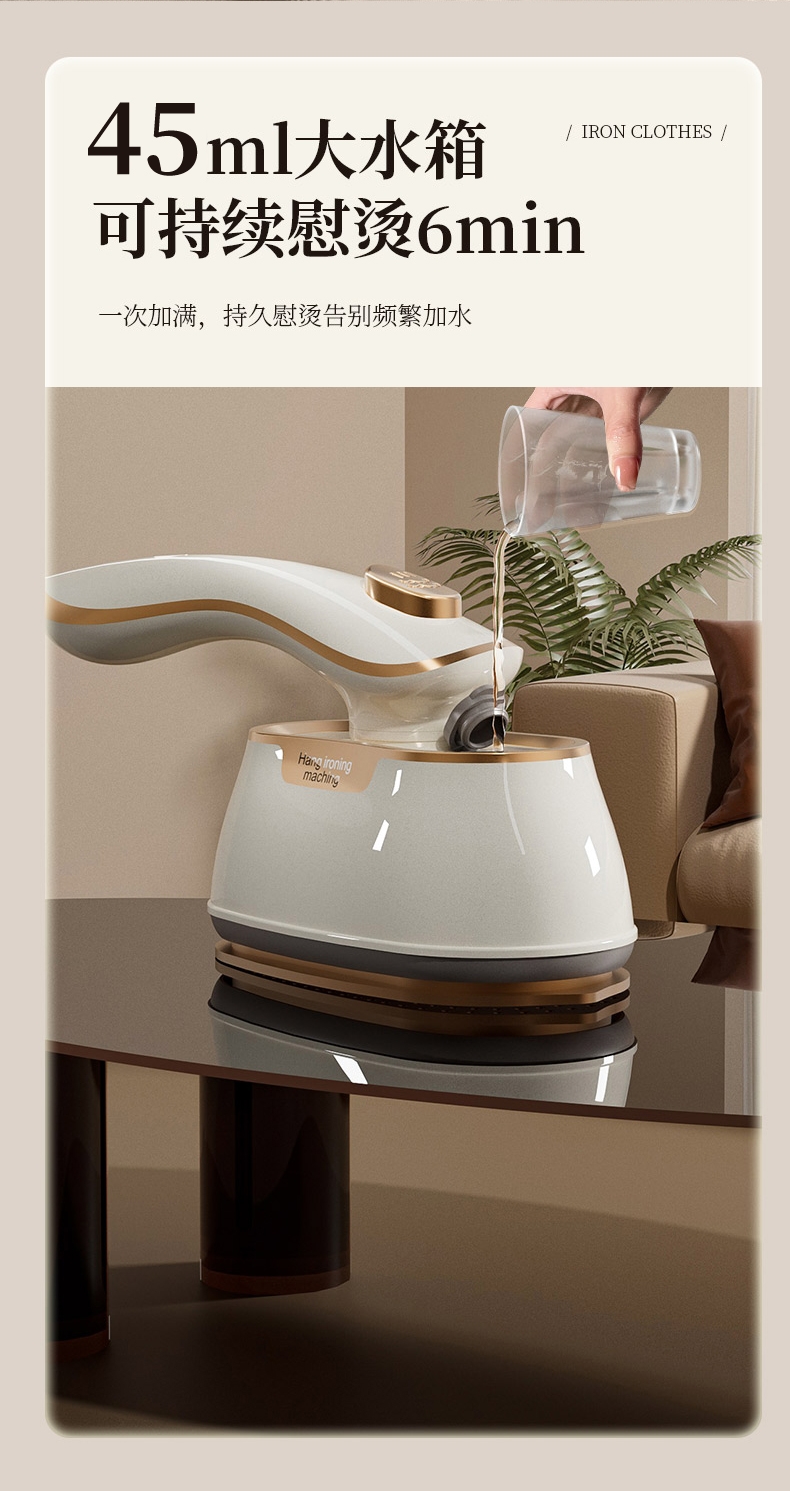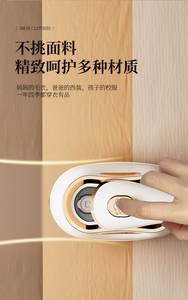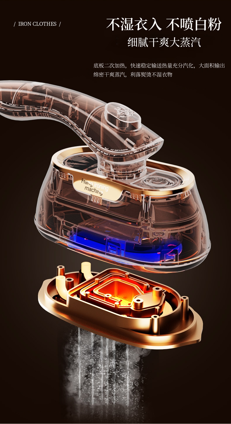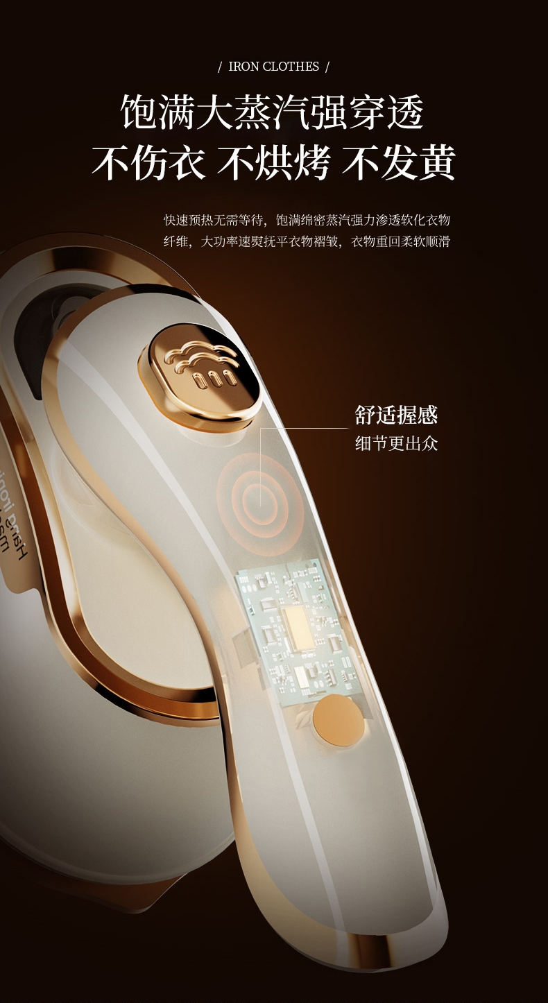 干湿双烫一烫即平;7孔强动出蒸汽;180°高温熨板