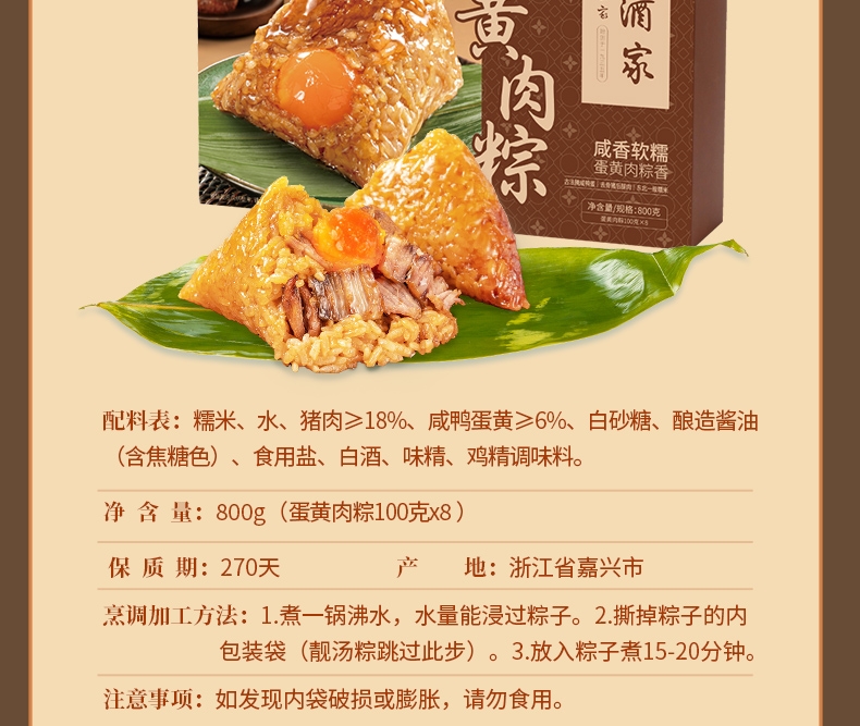 内含物:蛋黄肉粽100g*8