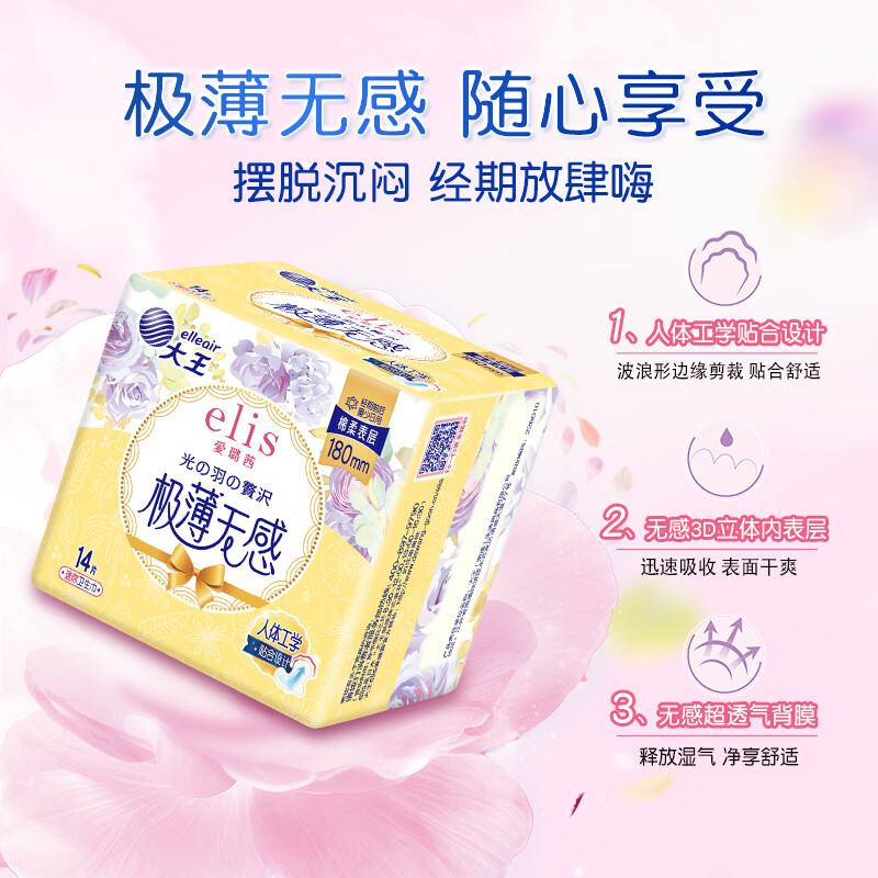 透气背膜 疏散闷热感;纤巧芯体 柔软又贴合;干爽无忧 告别潮湿黏腻;让瞬吸成为一种触感