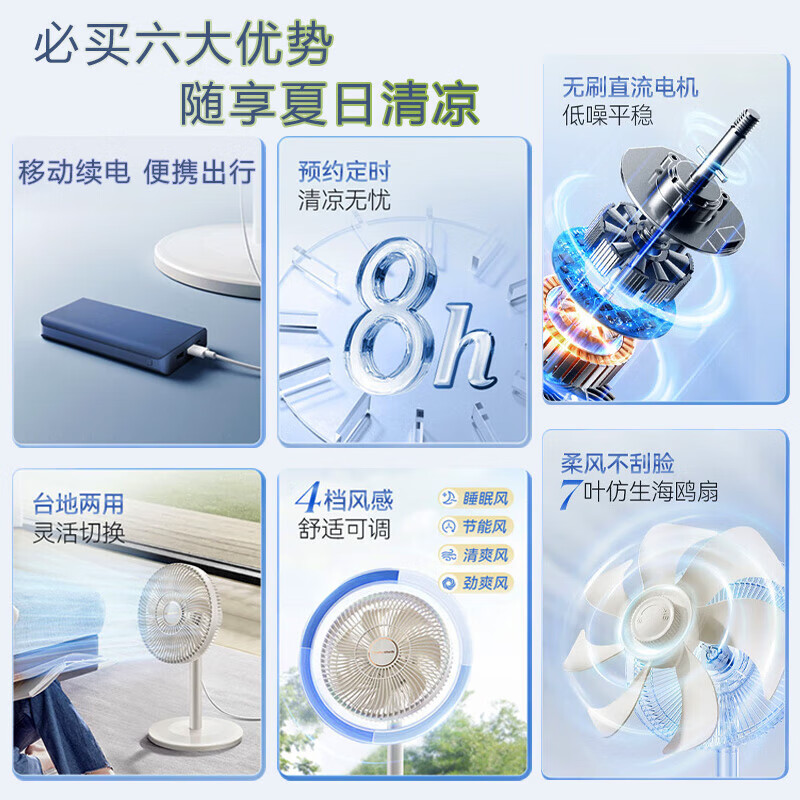 台地两用 灵活切换;移动续电;7叶海鸥仿生扇
