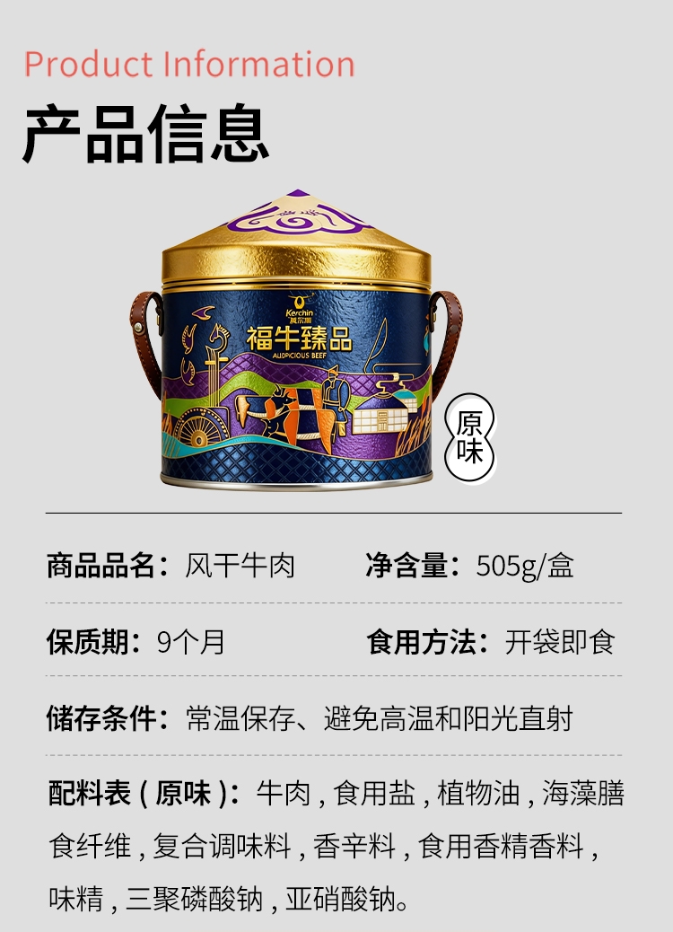 配置清单:风干牛肉505g+科尔沁蒙古包型礼盒