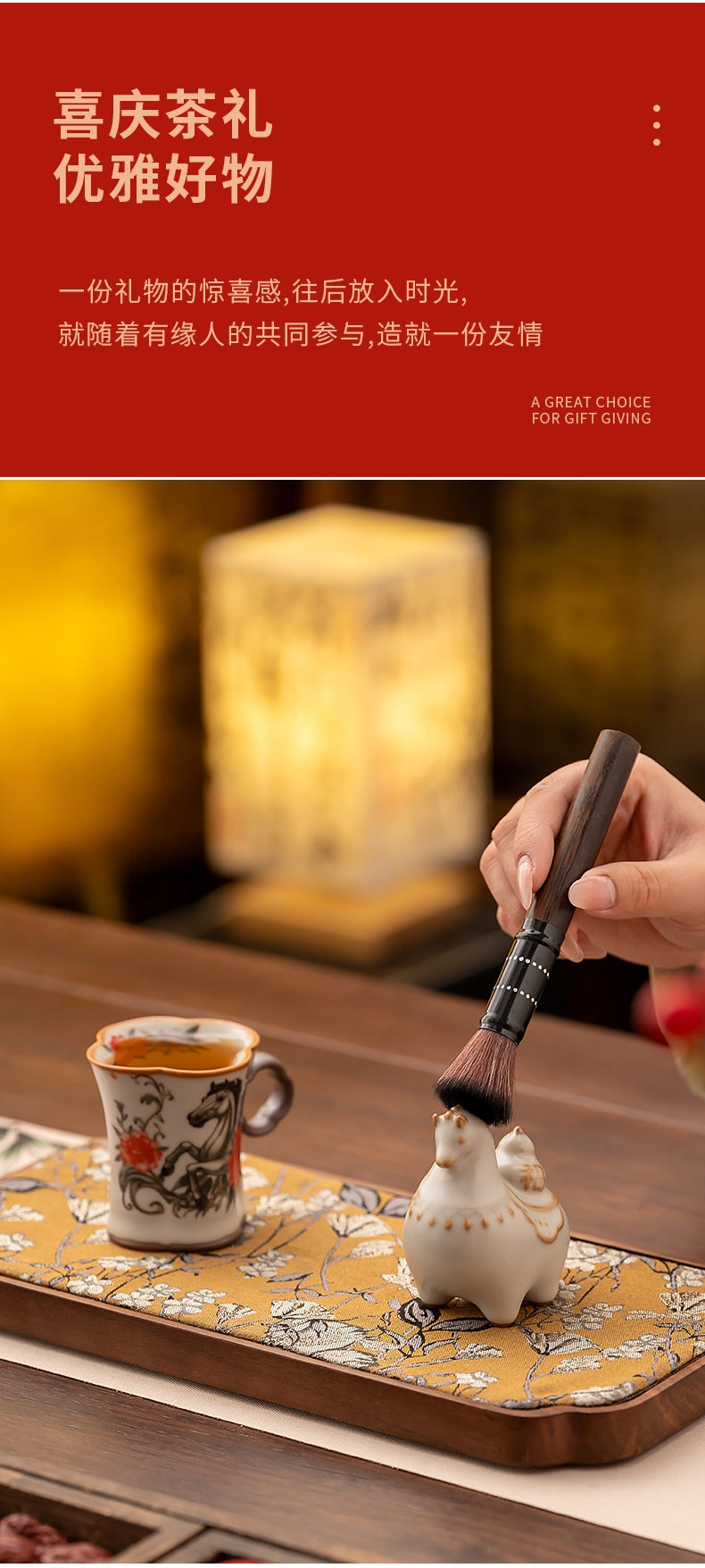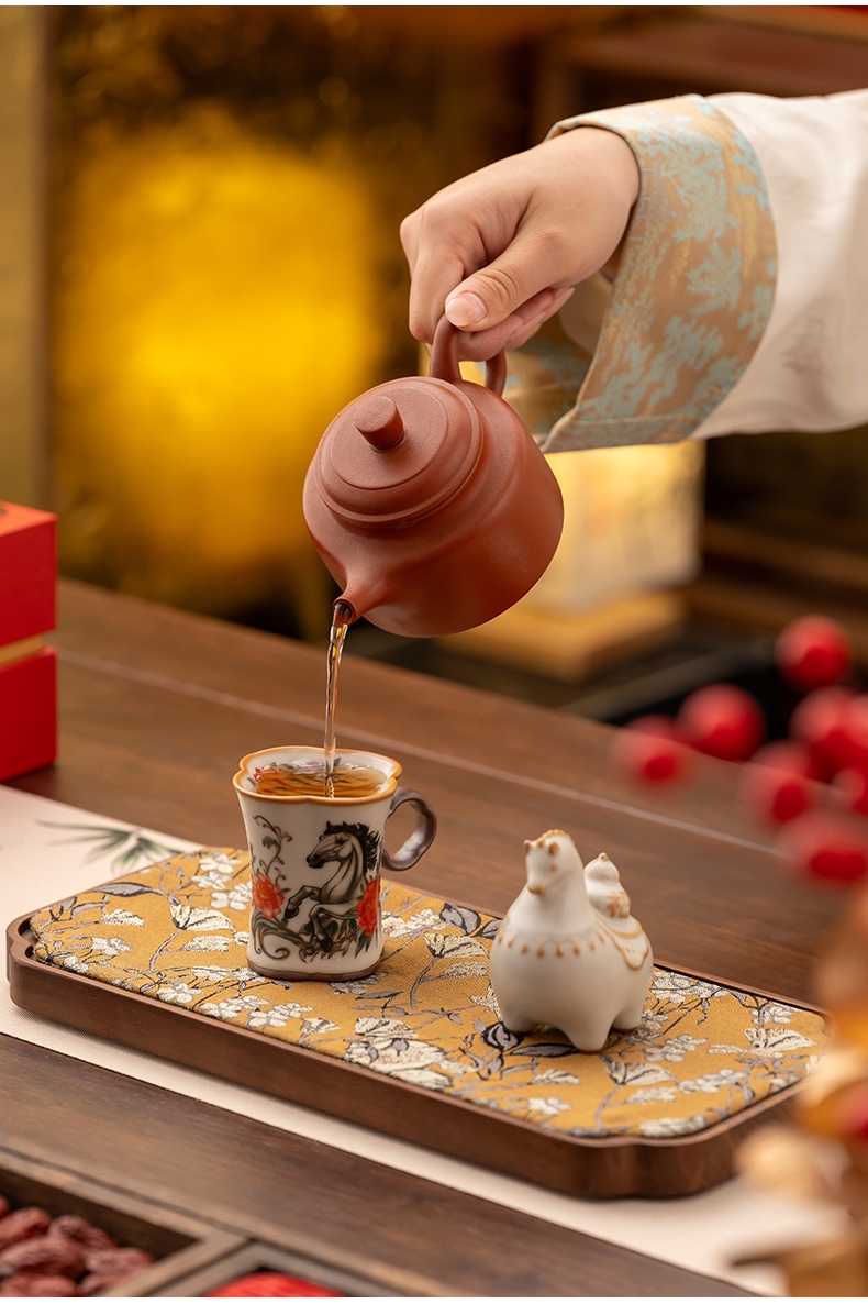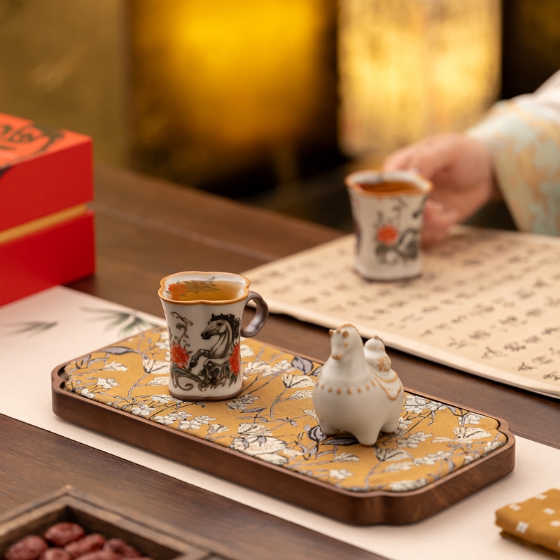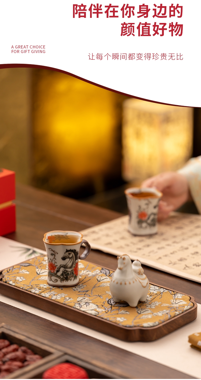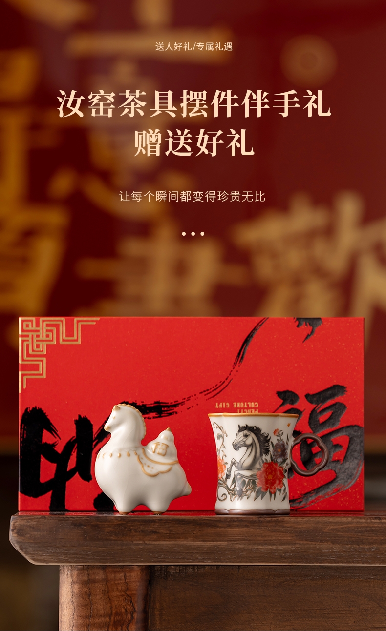 母亲节马上花开杯子摆件汝窑套装