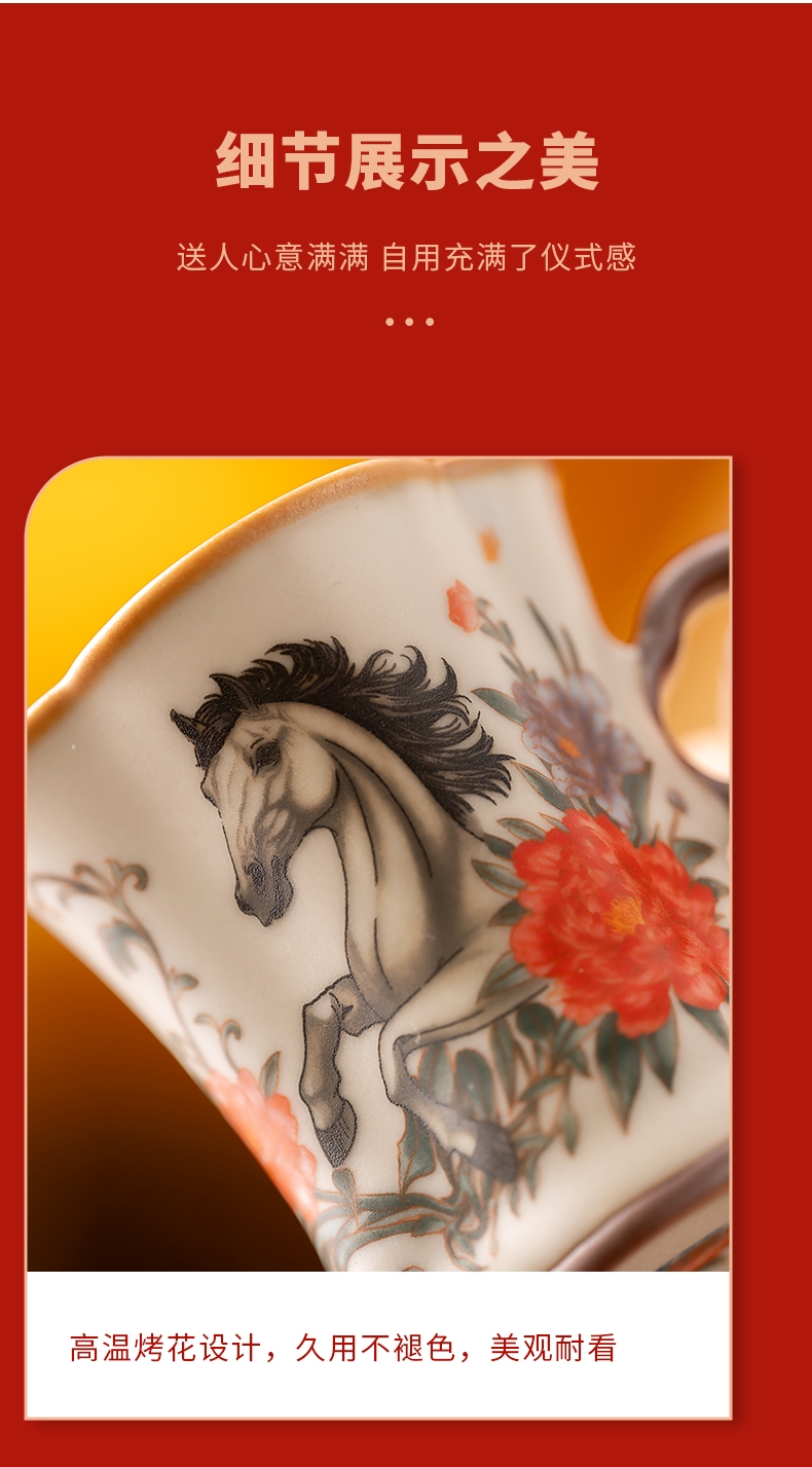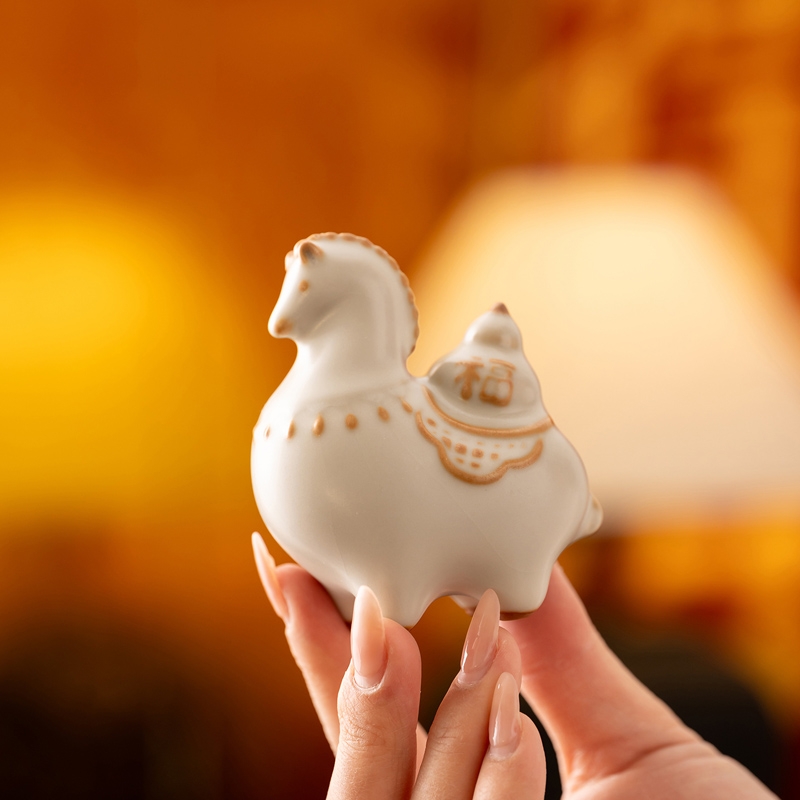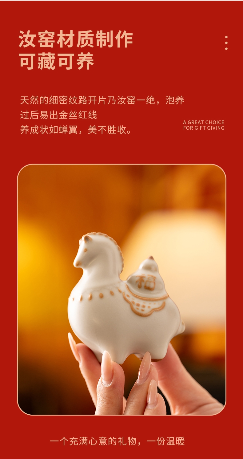 马背上葫芦造型,寓意福禄。亚黄汝瓷,玛瑙入釉;蝉翼开片,内外皆有花面,家有千财万贯,不如汝窑一片;独家专利技术新品。画面堆料技术,富有立体浮雕质感,