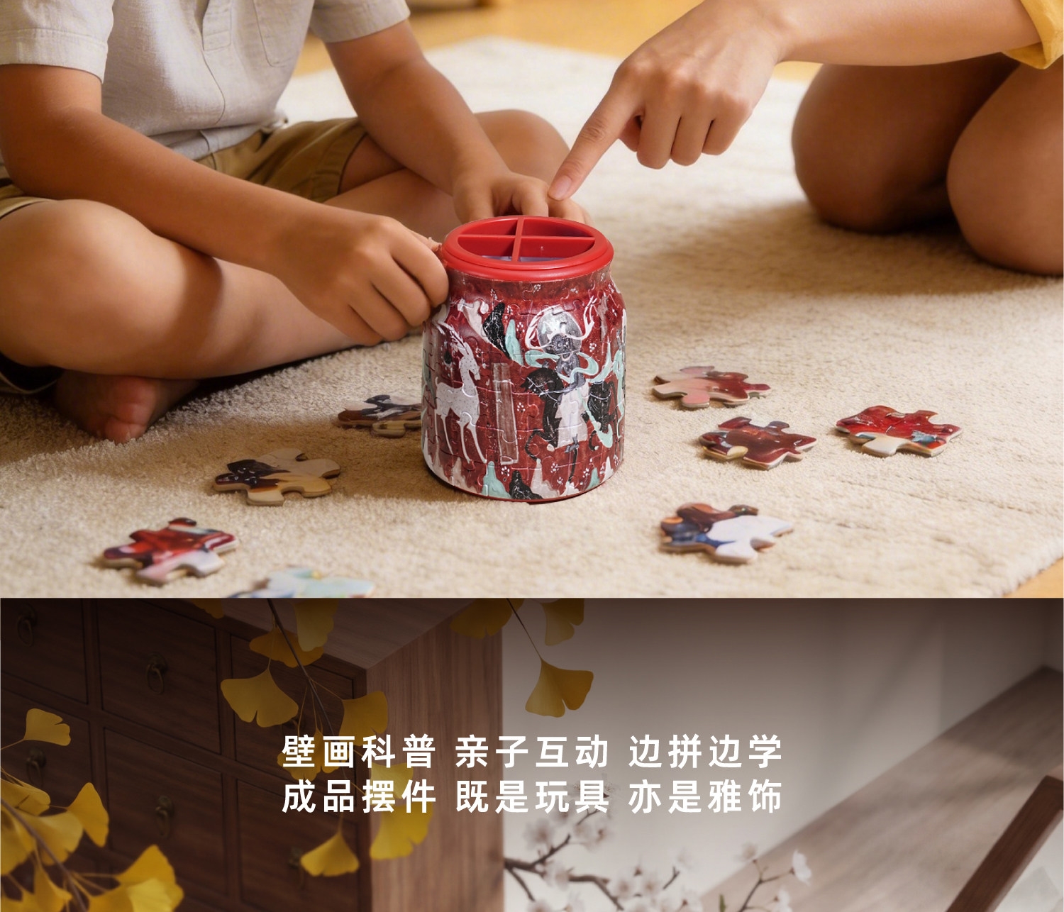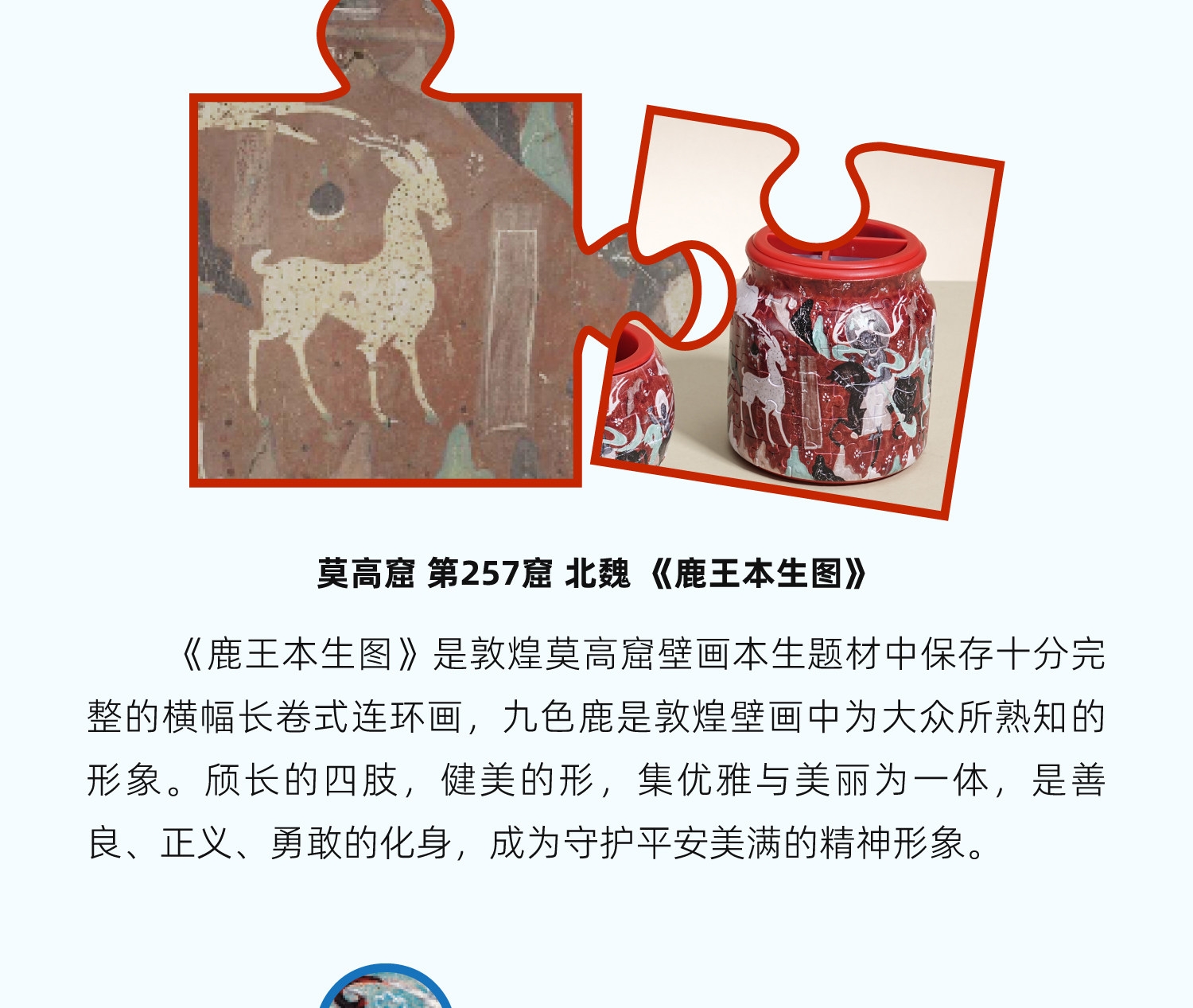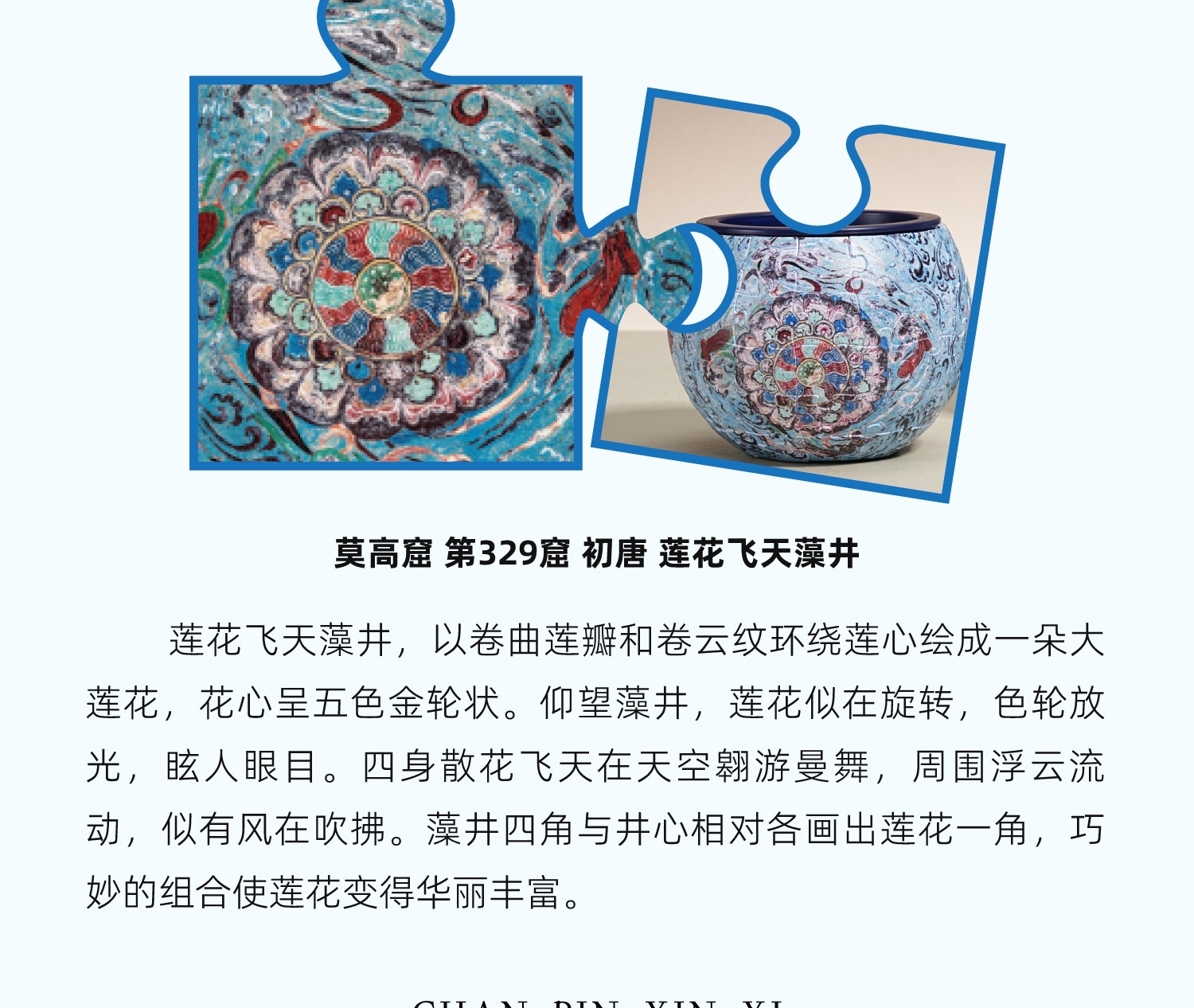 寓教于乐 趣拼敦煌;福泽绵延 慈悲为怀 鹿王本生;莲韵生香 天衣飞扬 莲花藻井