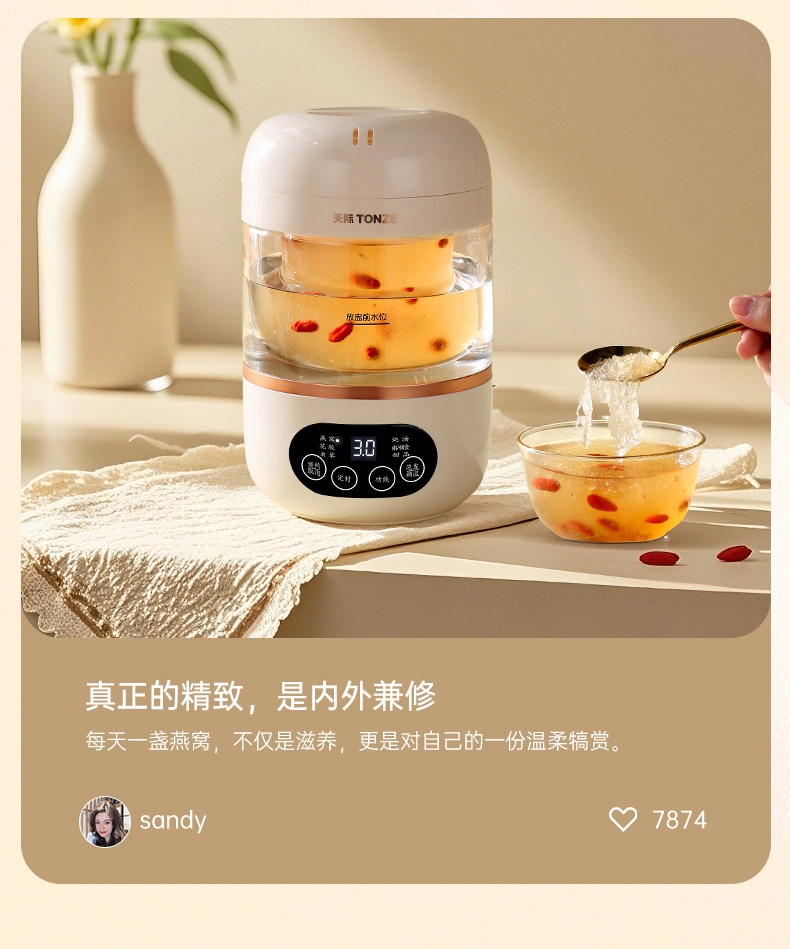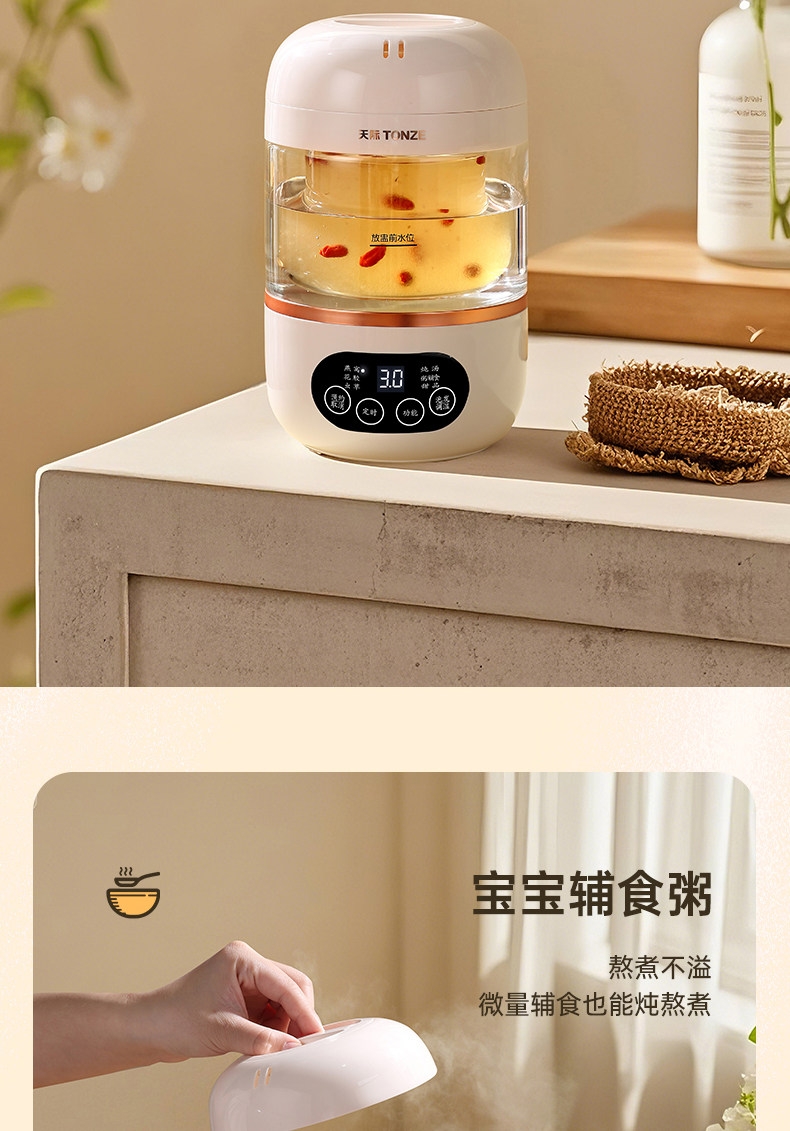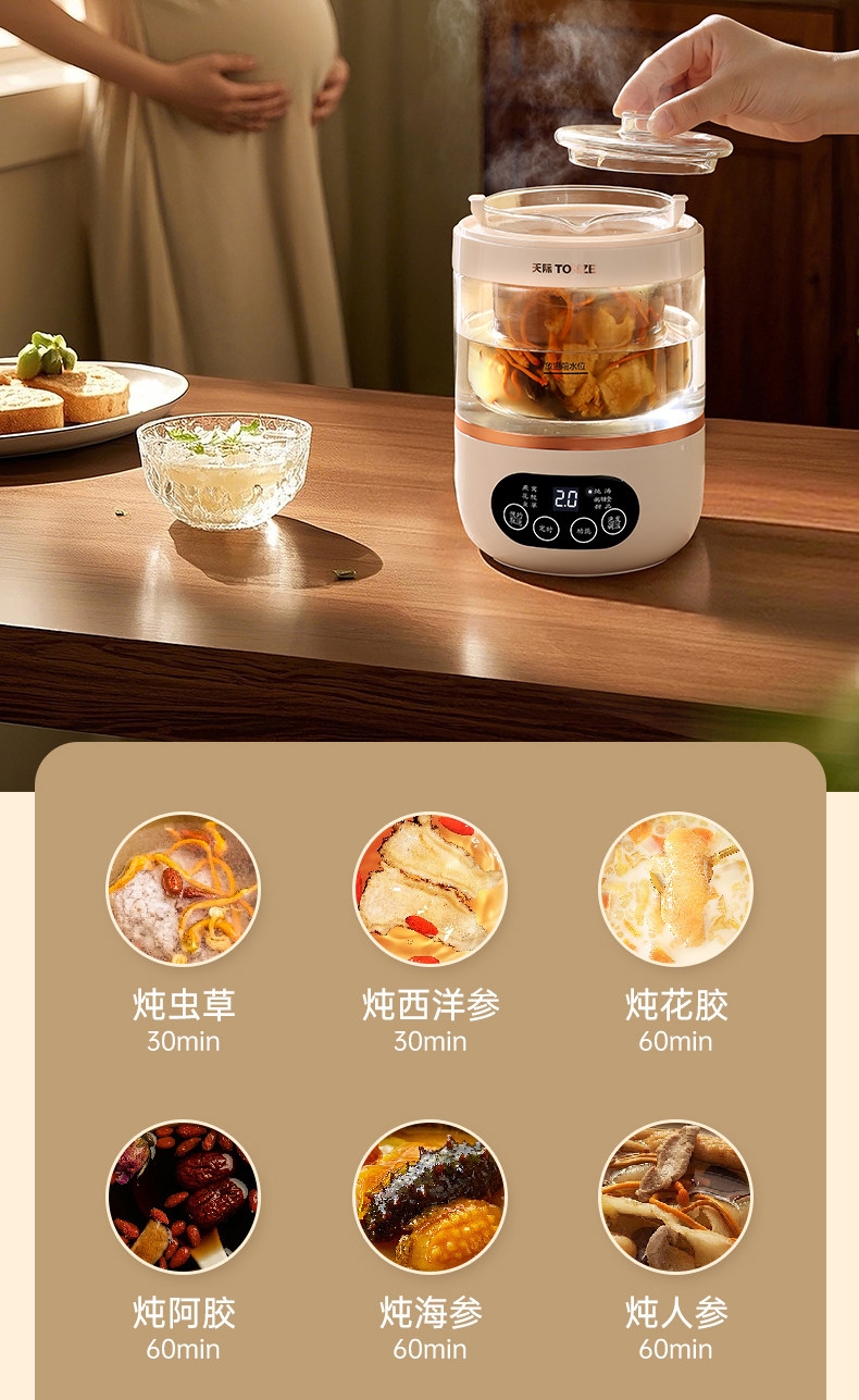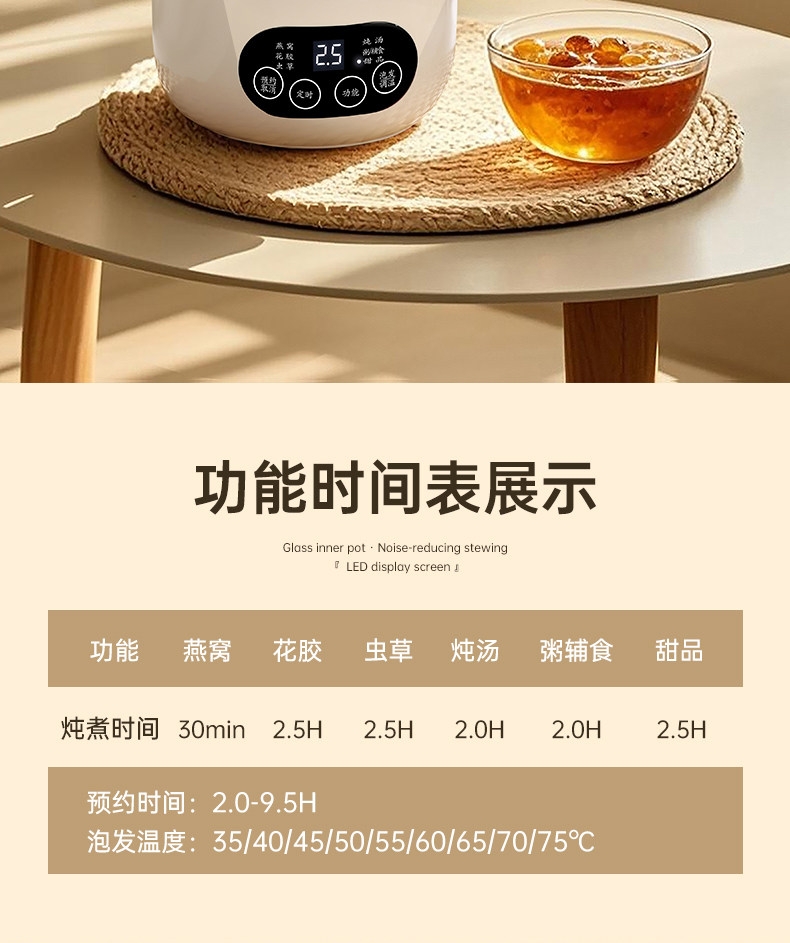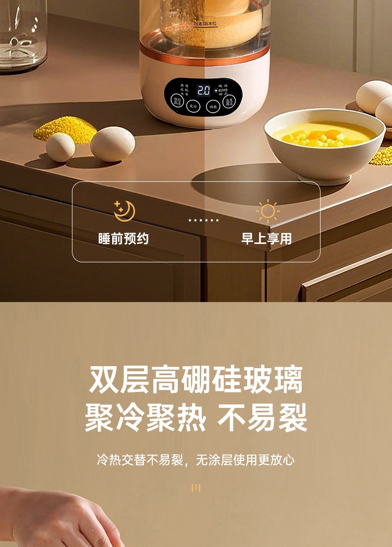 玻璃内胆·降噪炖煮·LED显示屏;冷热交替不易裂,无涂层使用更放心;内胆防烫提手