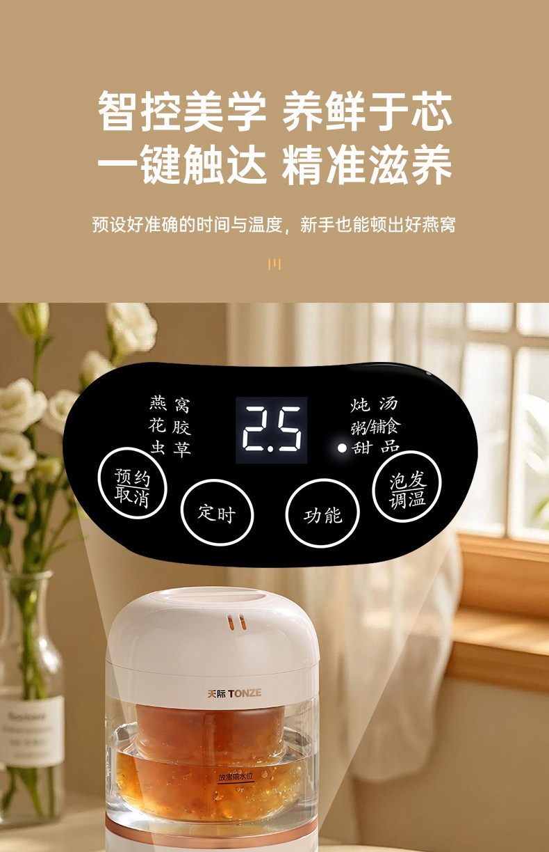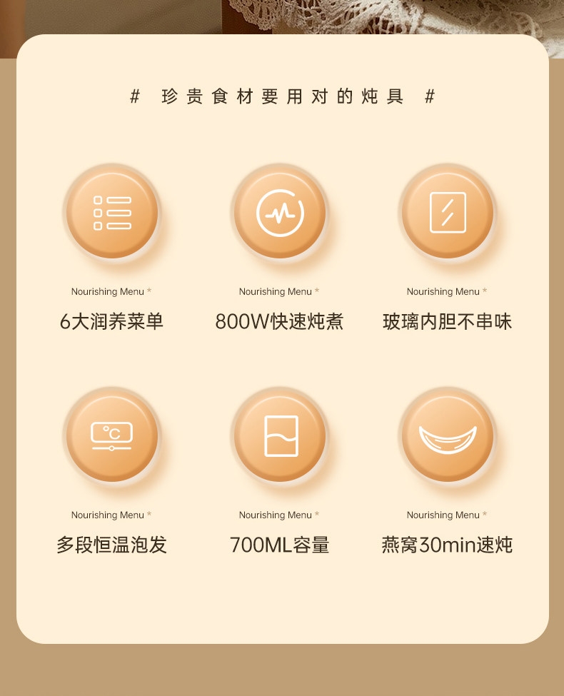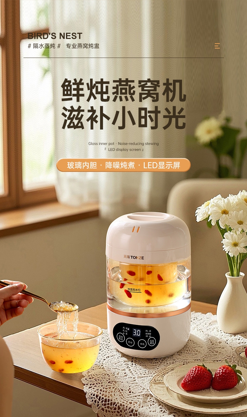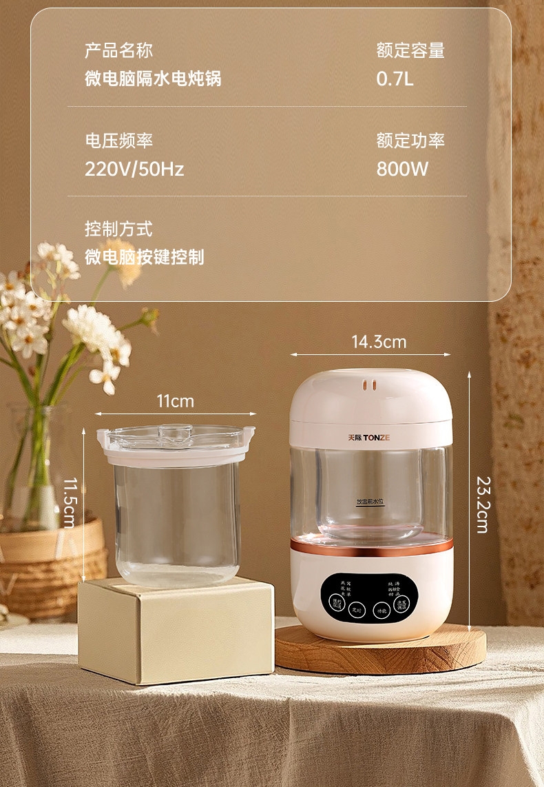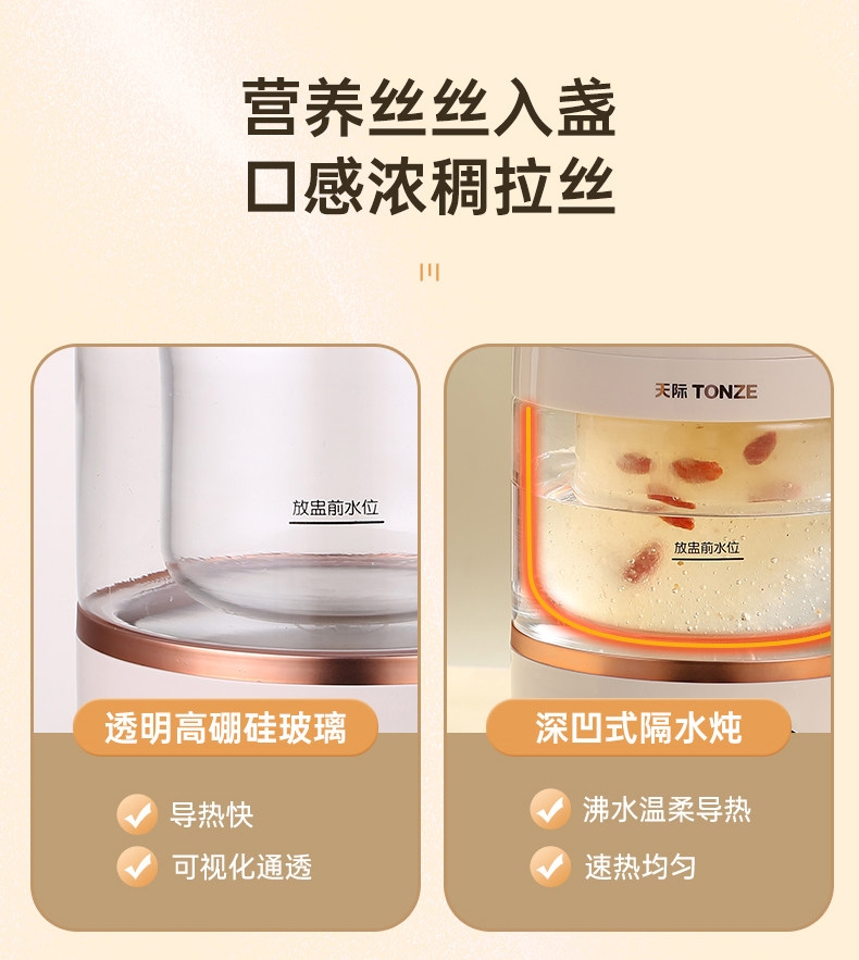 玻璃内胆·降噪炖煮·LED显示屏;冷热交替不易裂,无涂层使用更放心;内胆防烫提手