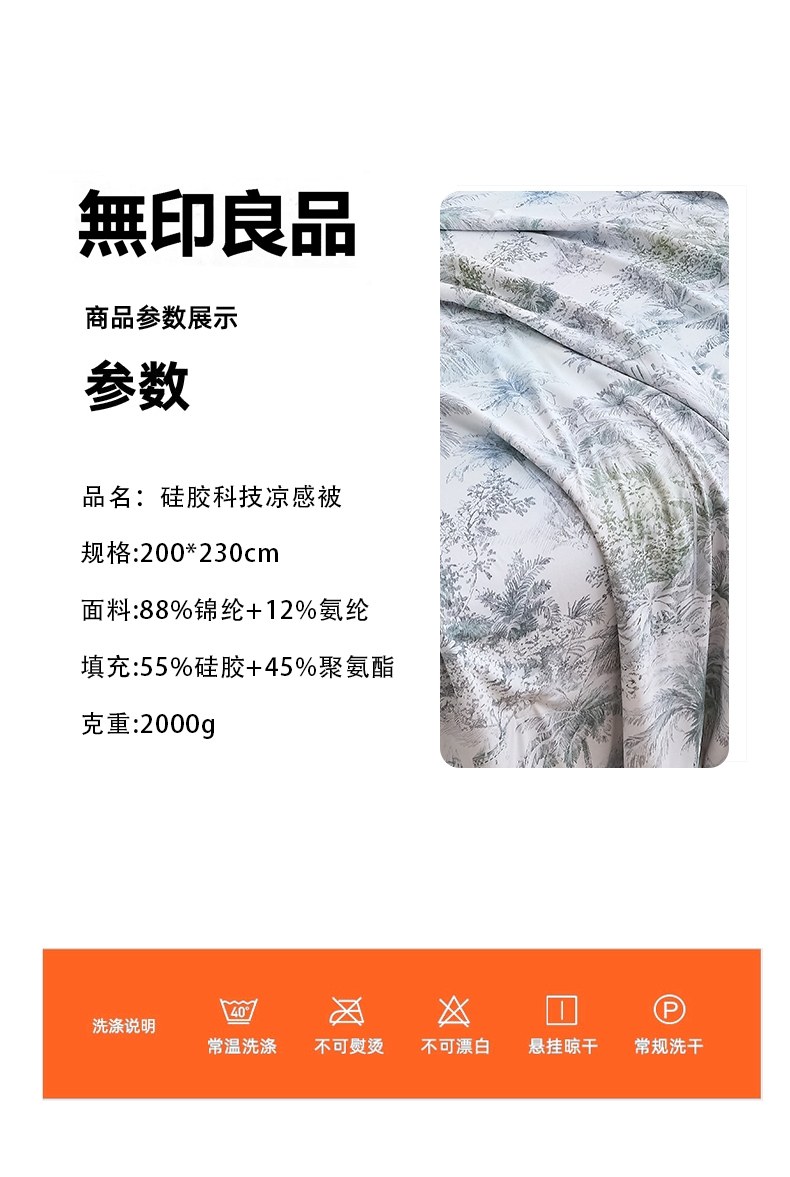 88%锦纶+12%氨纶凉感是一种科技纤维;硅胶填充,科技凉感;丝的品质是地道的生态纤维,源于天然而优于天然。