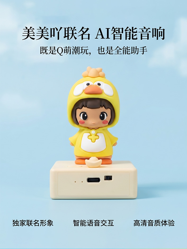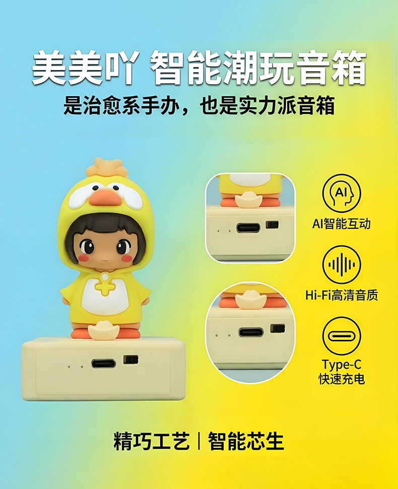 功能:智能音箱、AI语音助手、早教陪伴、手机支架及桌面潮玩摆件