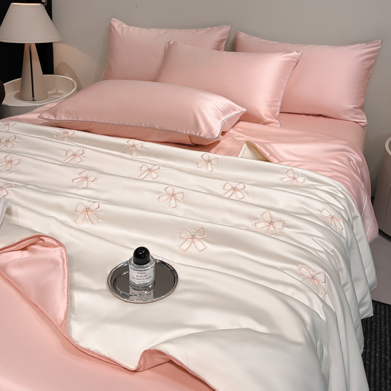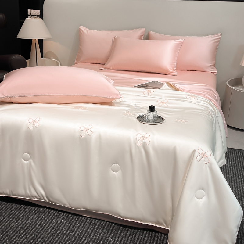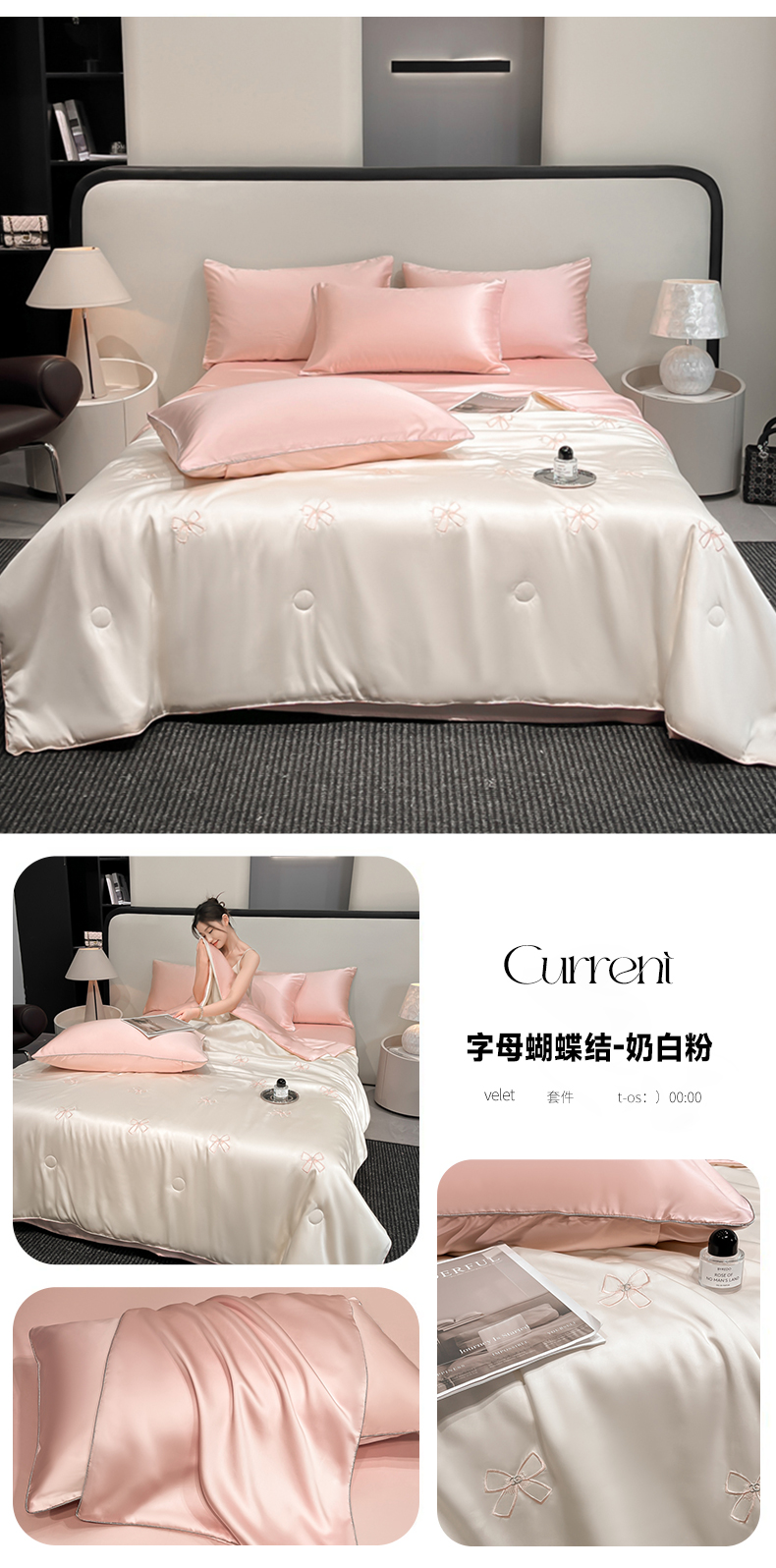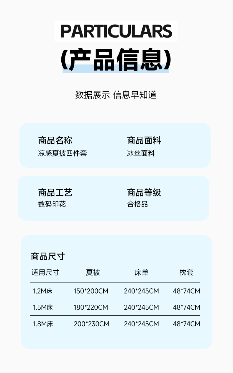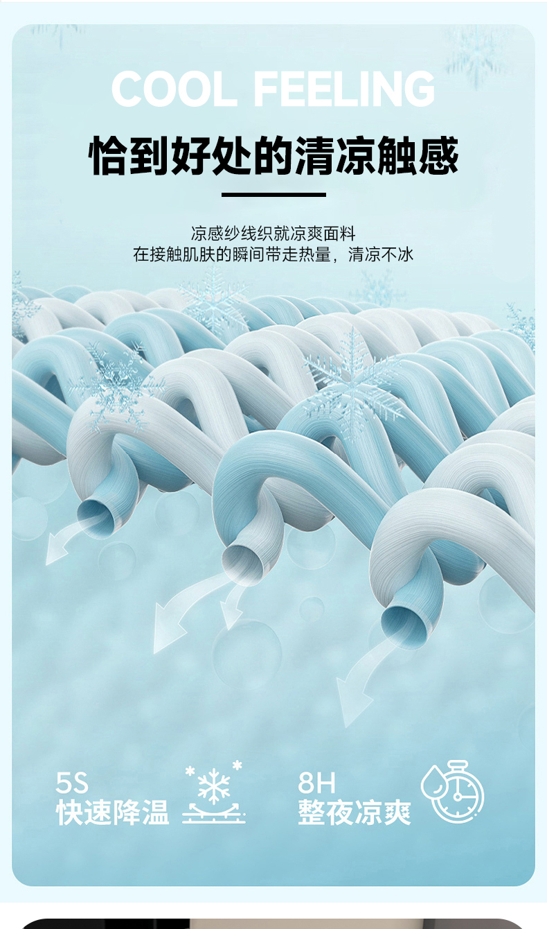 优质的凉感丝面料,丝滑透气,凉而不冰,比正常面料体;花型设计传承了经典简约风,选择较为简约温馨的颜色,;绿色环保印染技术,环保健康,严控PH值甲醛等,枕套
