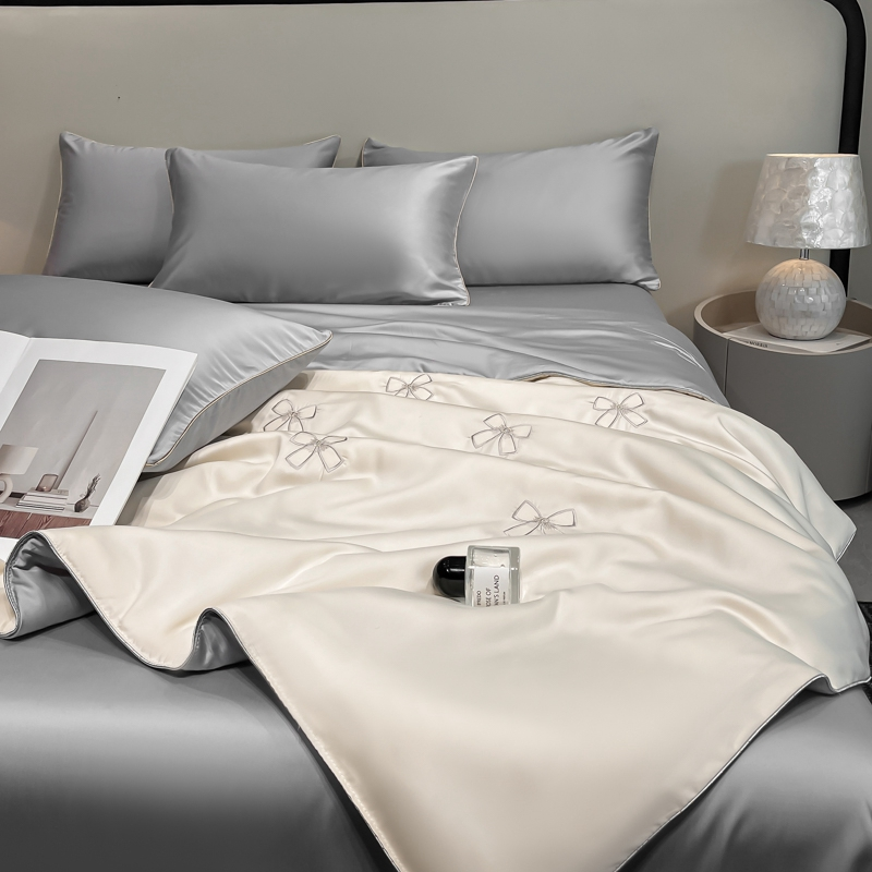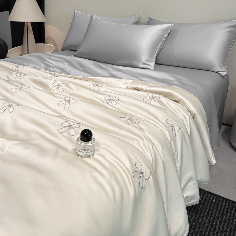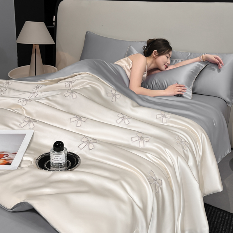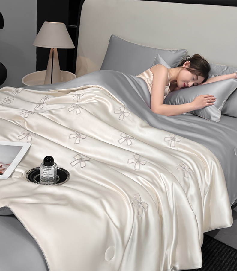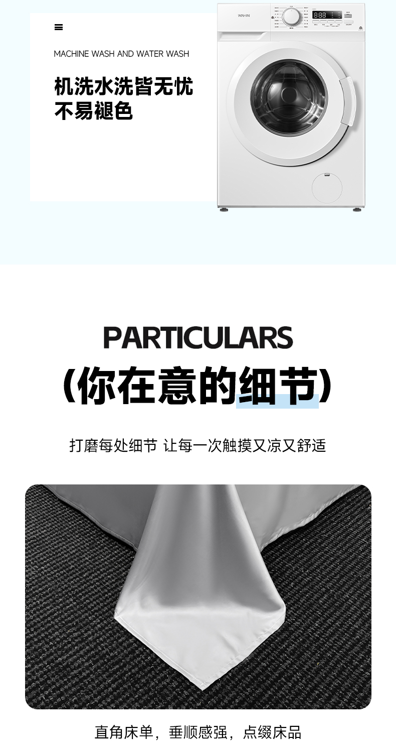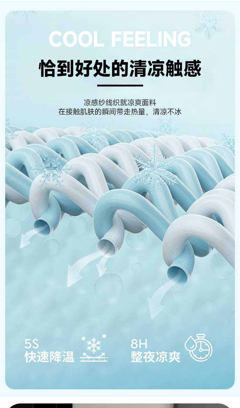 采用优质的凉感丝面料,丝滑透气,凉而不冰,比正常面;花型设计传承了经典简约风,选择较为简约温馨的颜色,; 绿色环保印染技术,环保健康,严控PH值甲醛等,枕