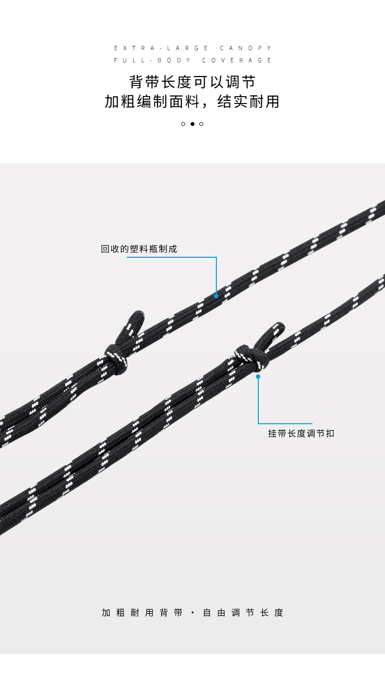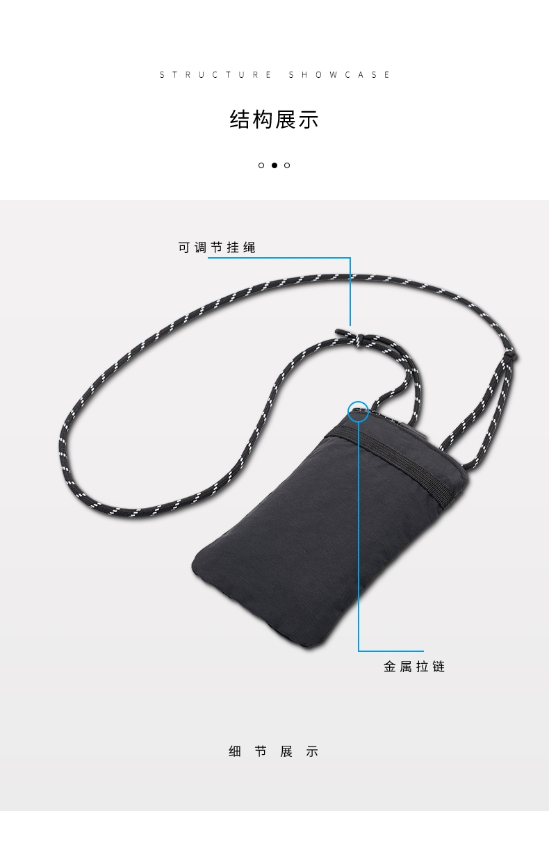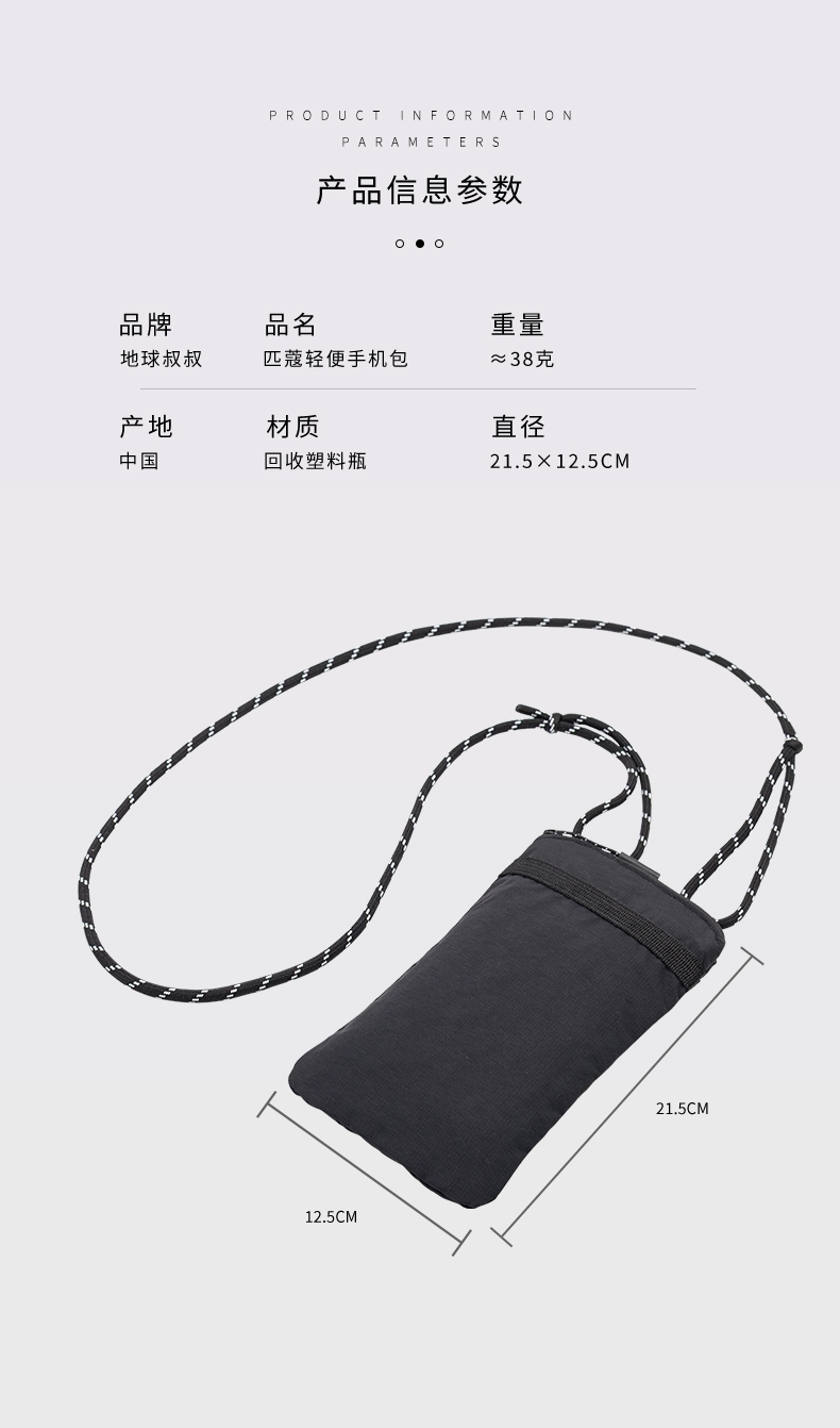 防水可循环再生尼龙面料,无惧雨水泼溅和日常污渍;仅重 38 克, 让你几乎感觉不到它的存在;极简风格与坚实实用性完美结合,日常通勤户外野营必备