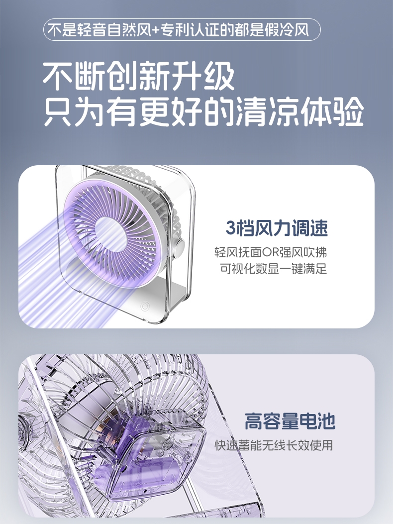 牛角大扇叶;续航更持久;低音降噪电机